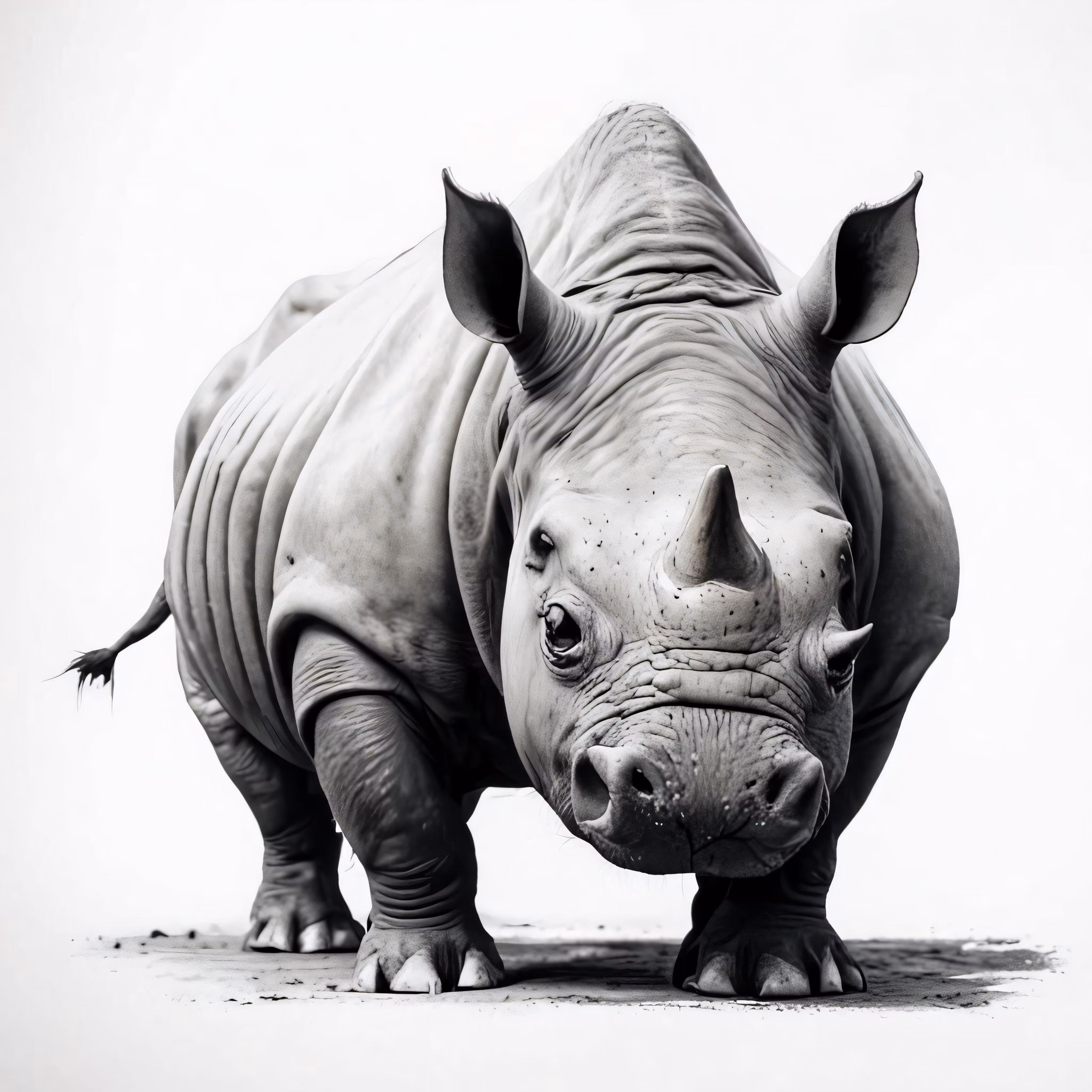 High resolution picture, free to use, a rhino standing on top of a white field