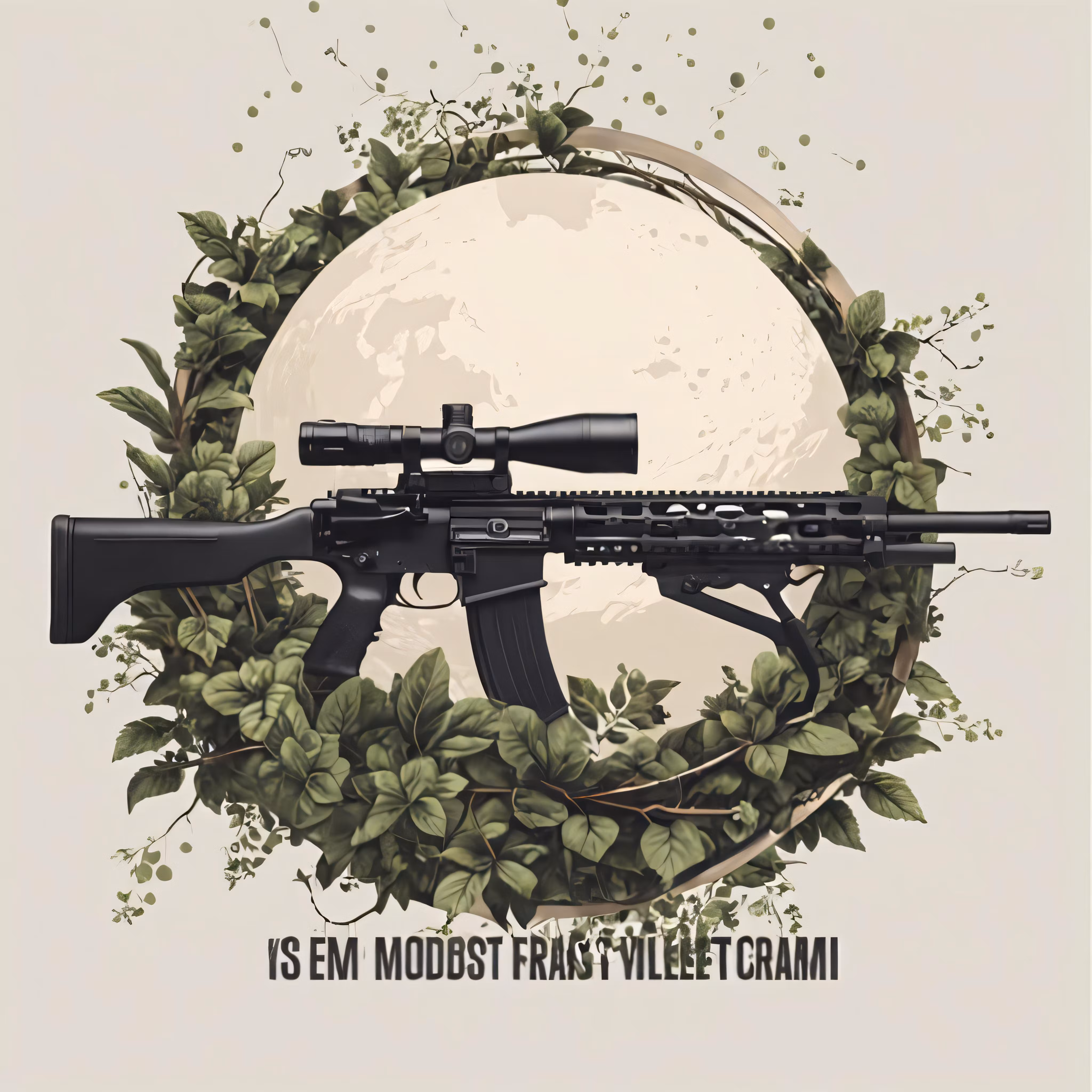 High resolution picture, free to use, a rifle with trees, leaves and a quote