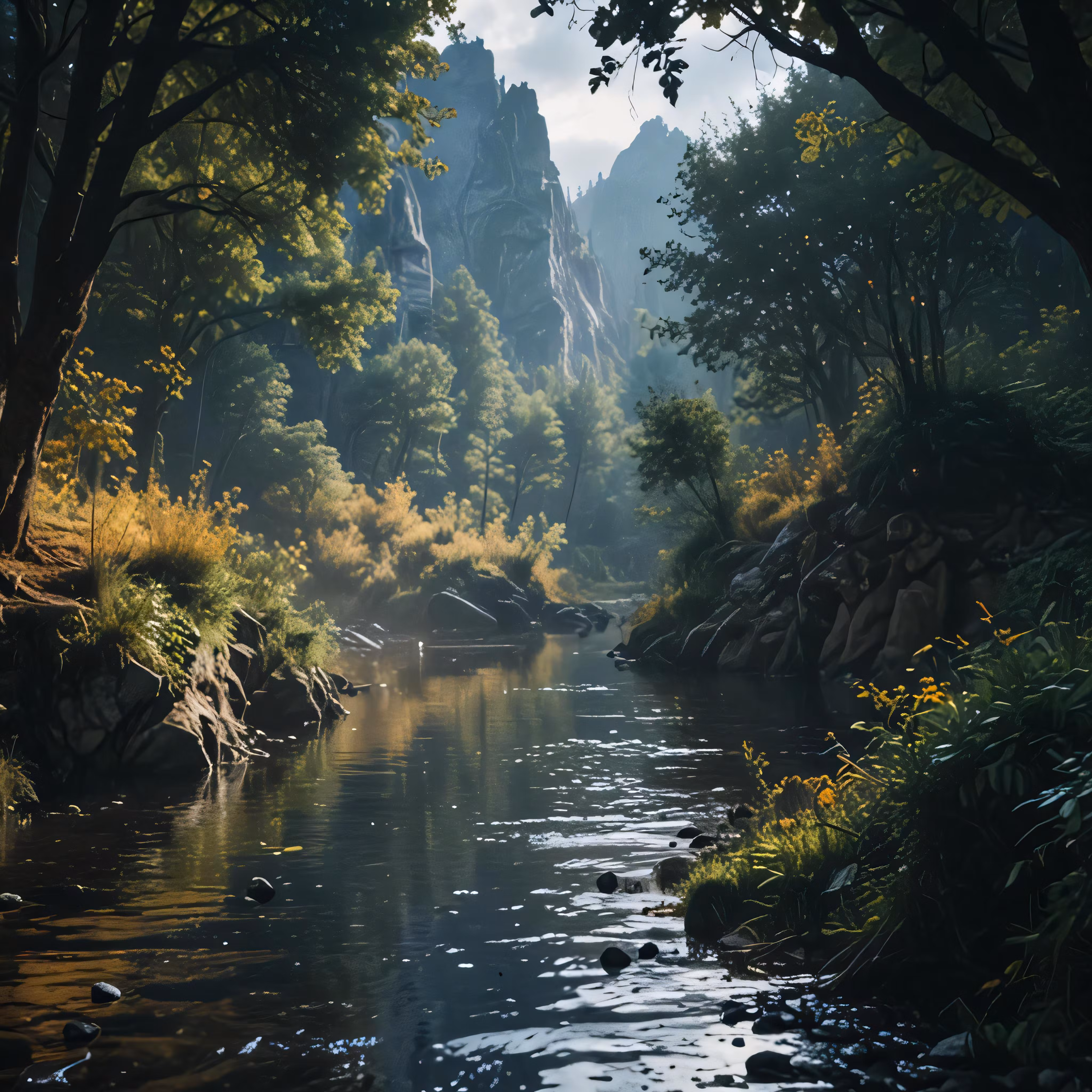 High resolution picture, free to use, a river that is in front of mountains and trees