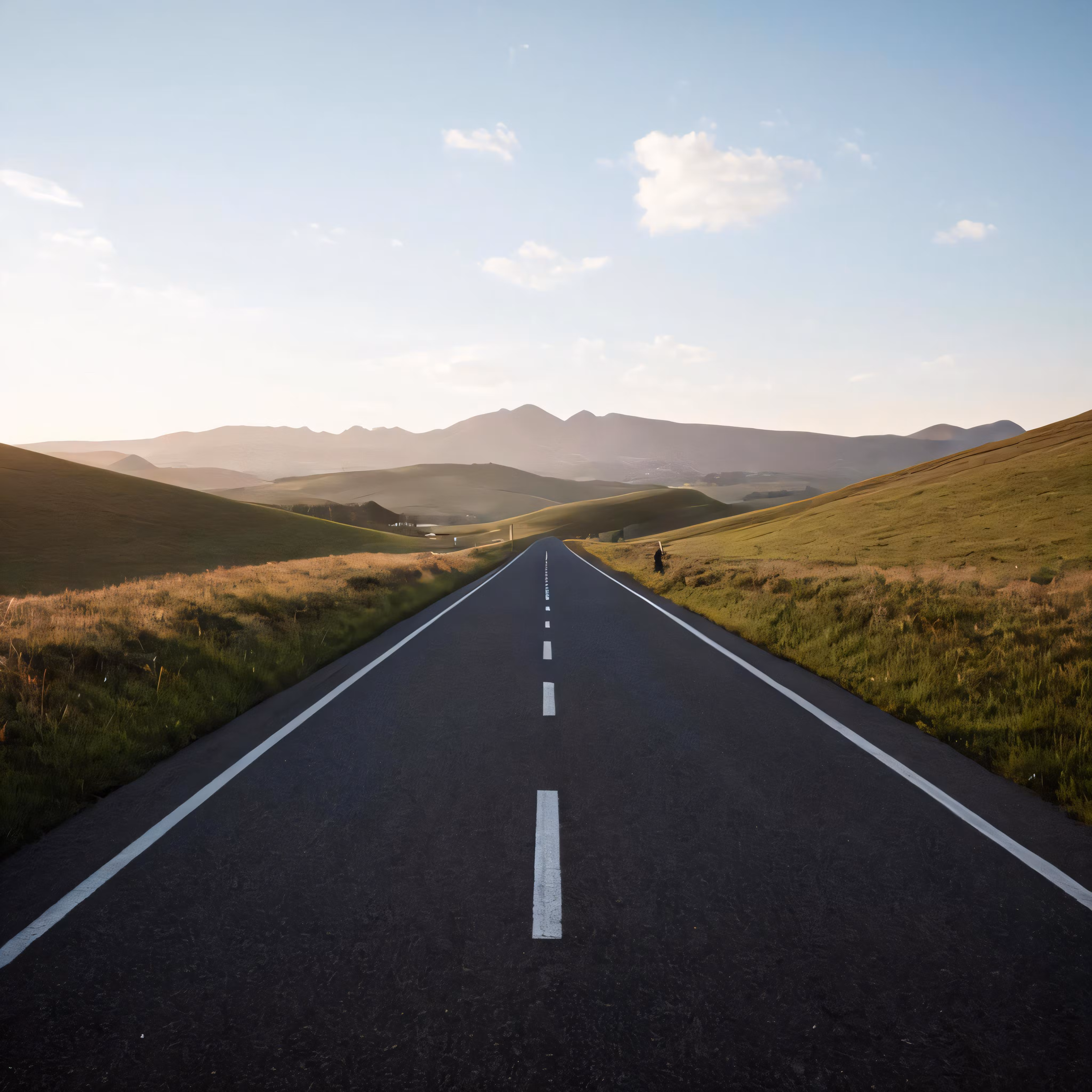 High resolution picture, free to use, a road leading into the mountains at sunset