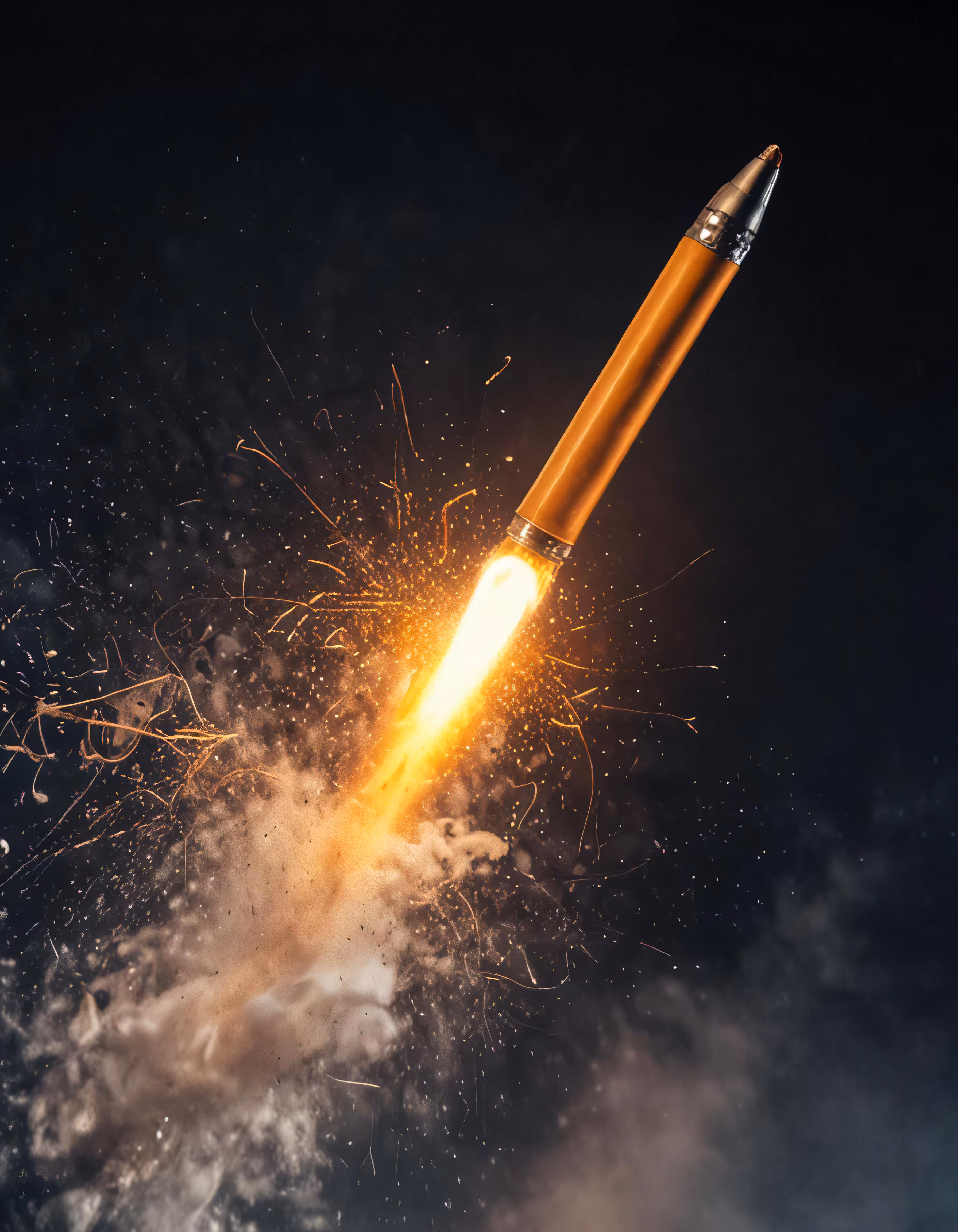 High resolution picture, free to use, a rocket launching with stars coming out of it