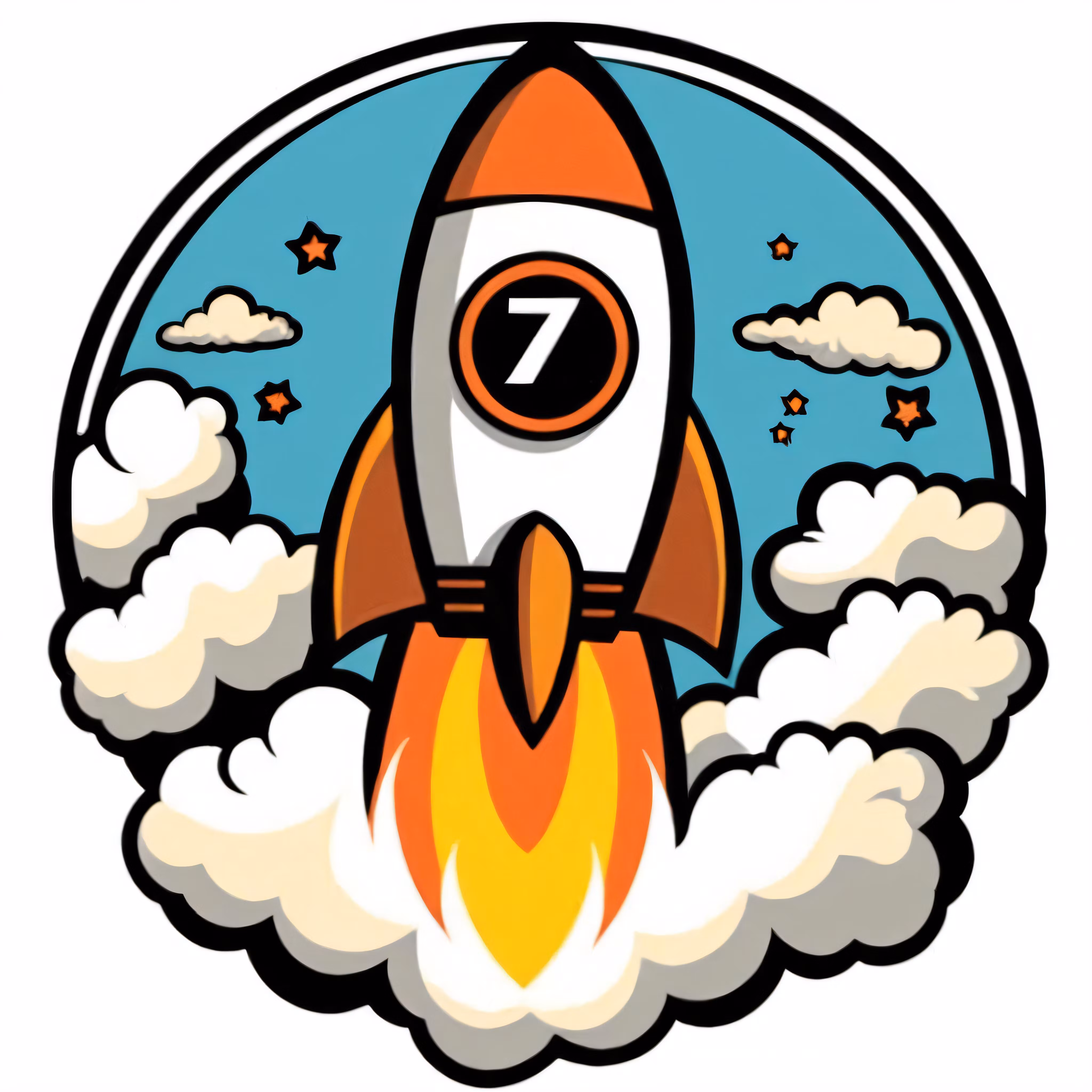 High resolution picture, free to use, a rocket with a number 7 on it flying through the sky
