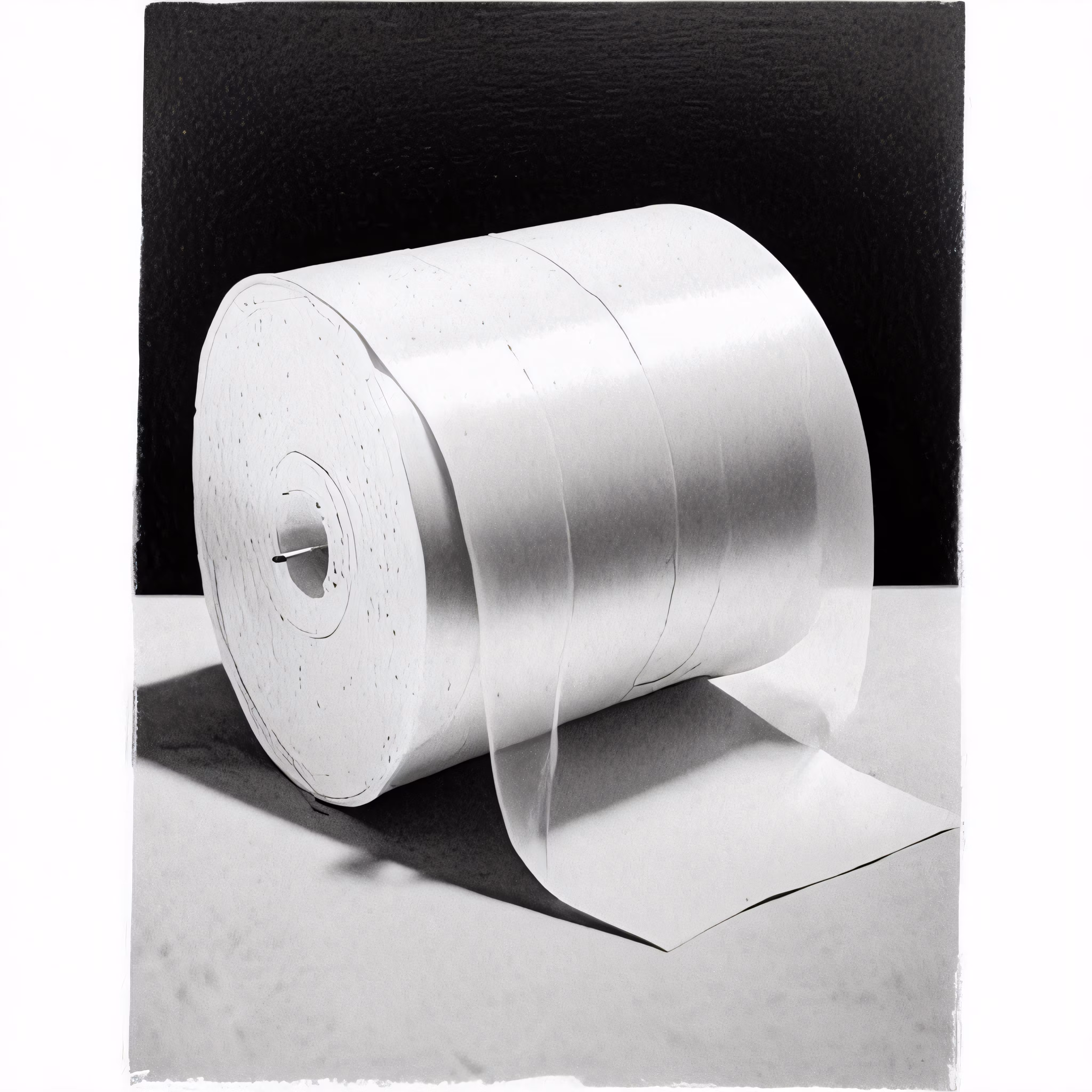 High resolution picture, free to use, a roll of white toilet paper sits next to a piece of cardboard