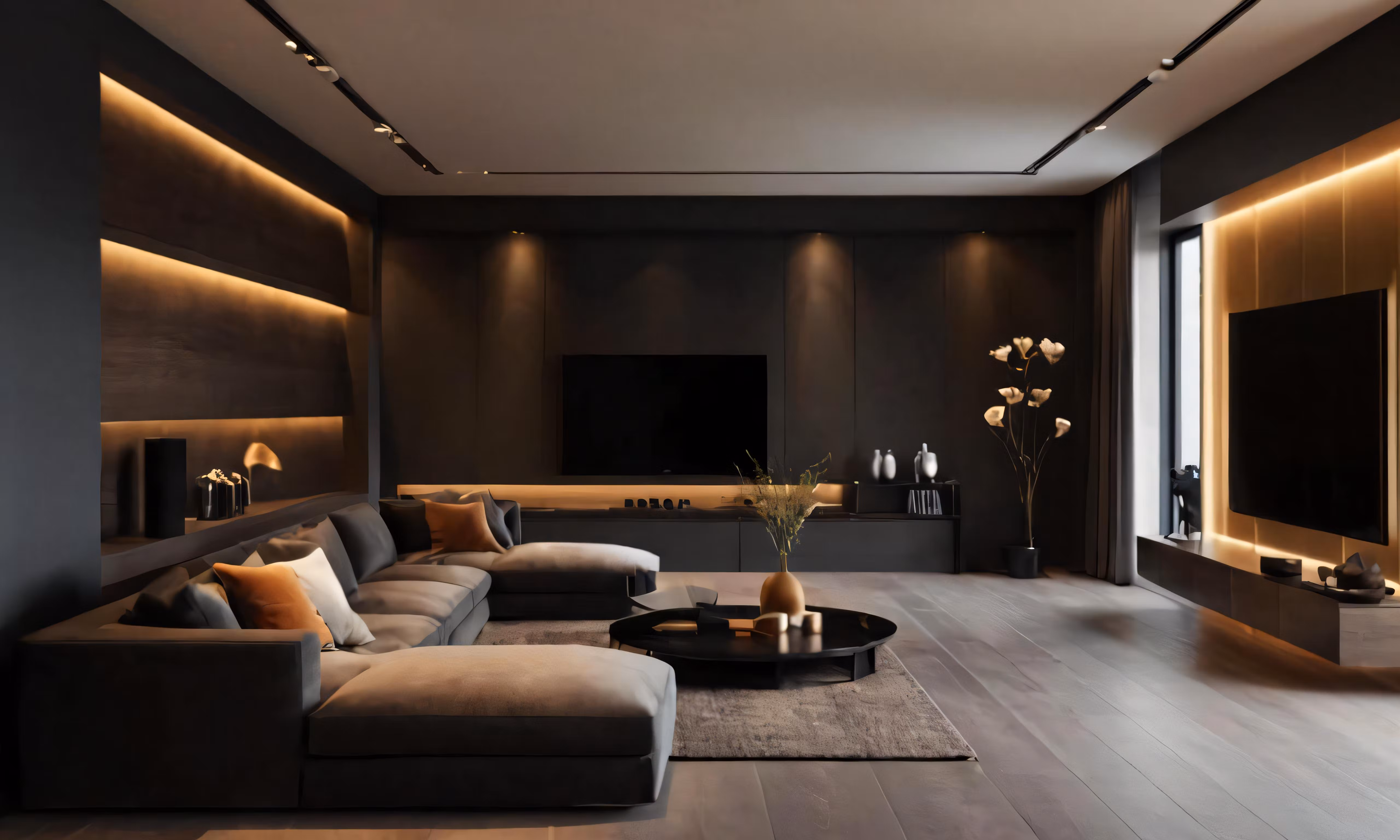 High resolution picture, free to use, a room with large couches and a big screen tv
