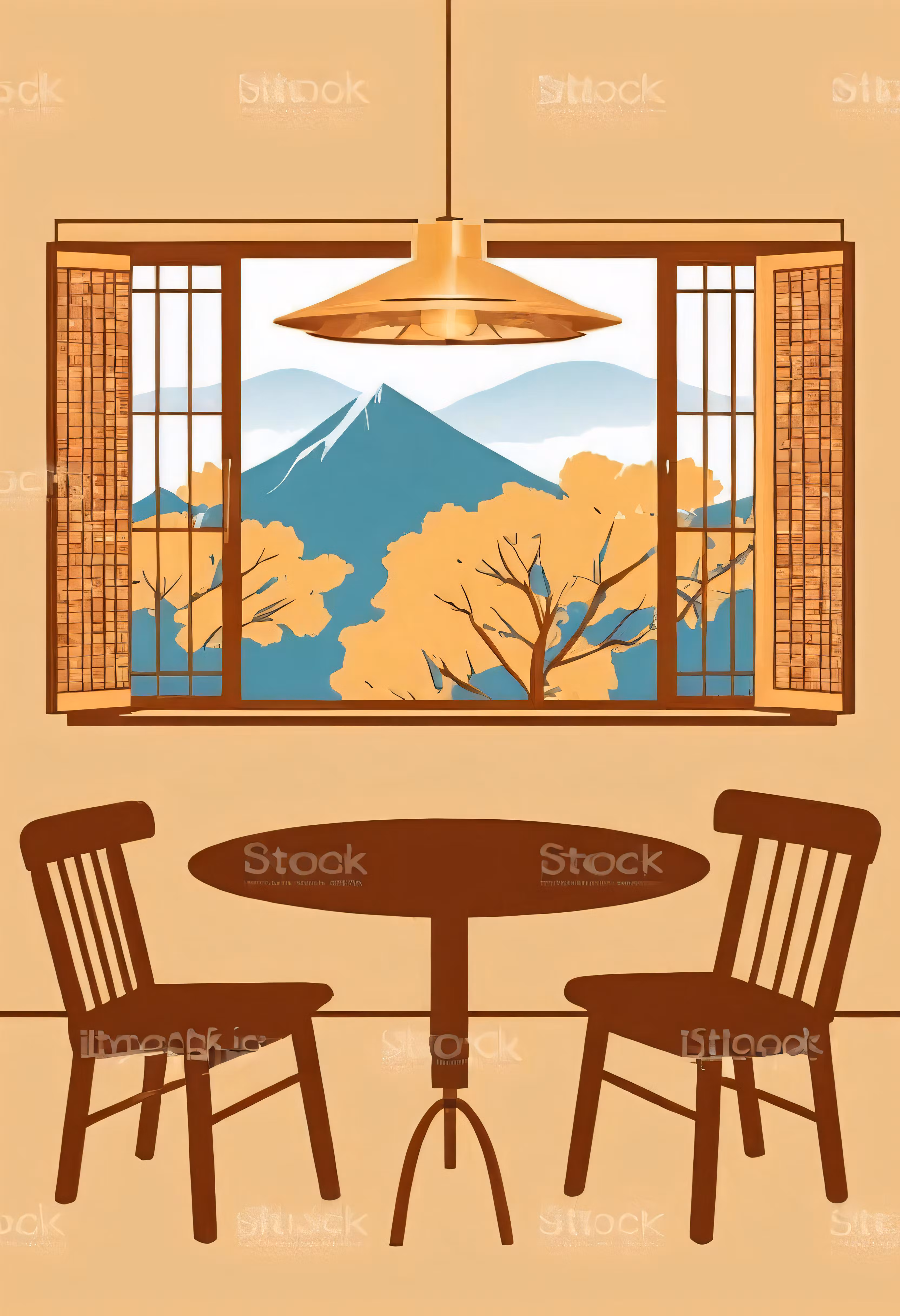 High resolution picture, free to use, a room with two chairs, a table and a view out a window