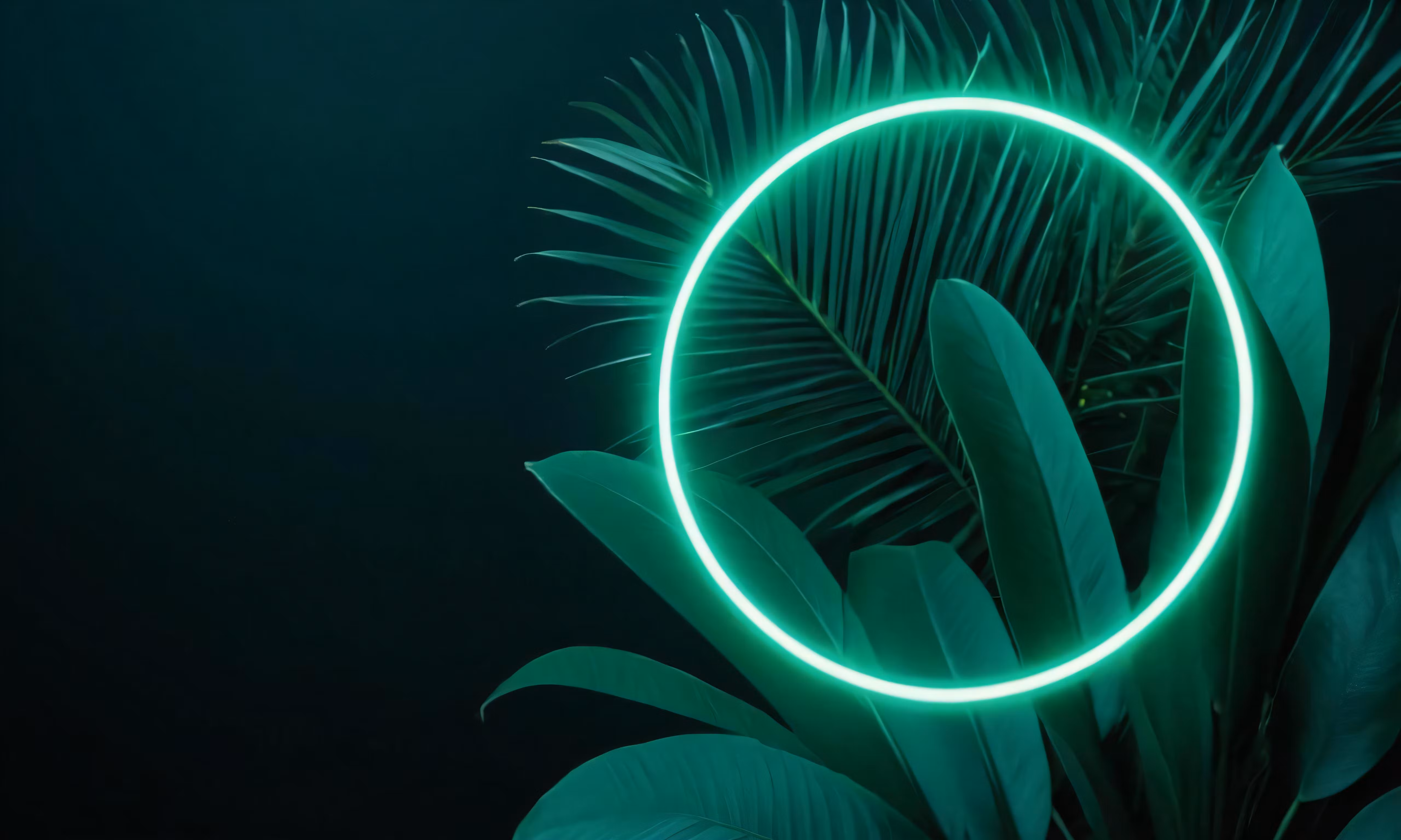 High resolution picture, free to use, a round, neon ring over some plants and leaves
