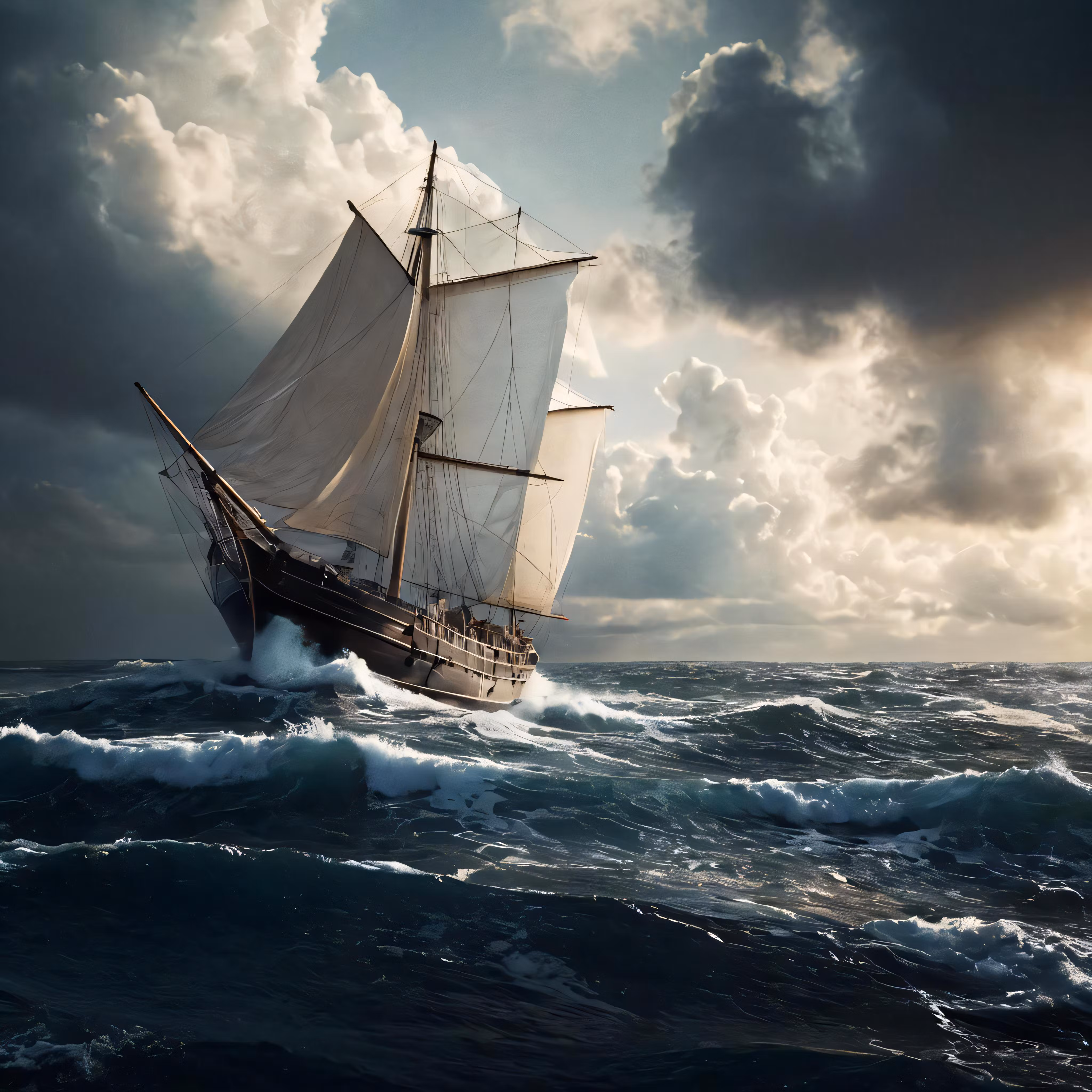 High resolution picture, free to use, a sailboat is going across the rough ocean