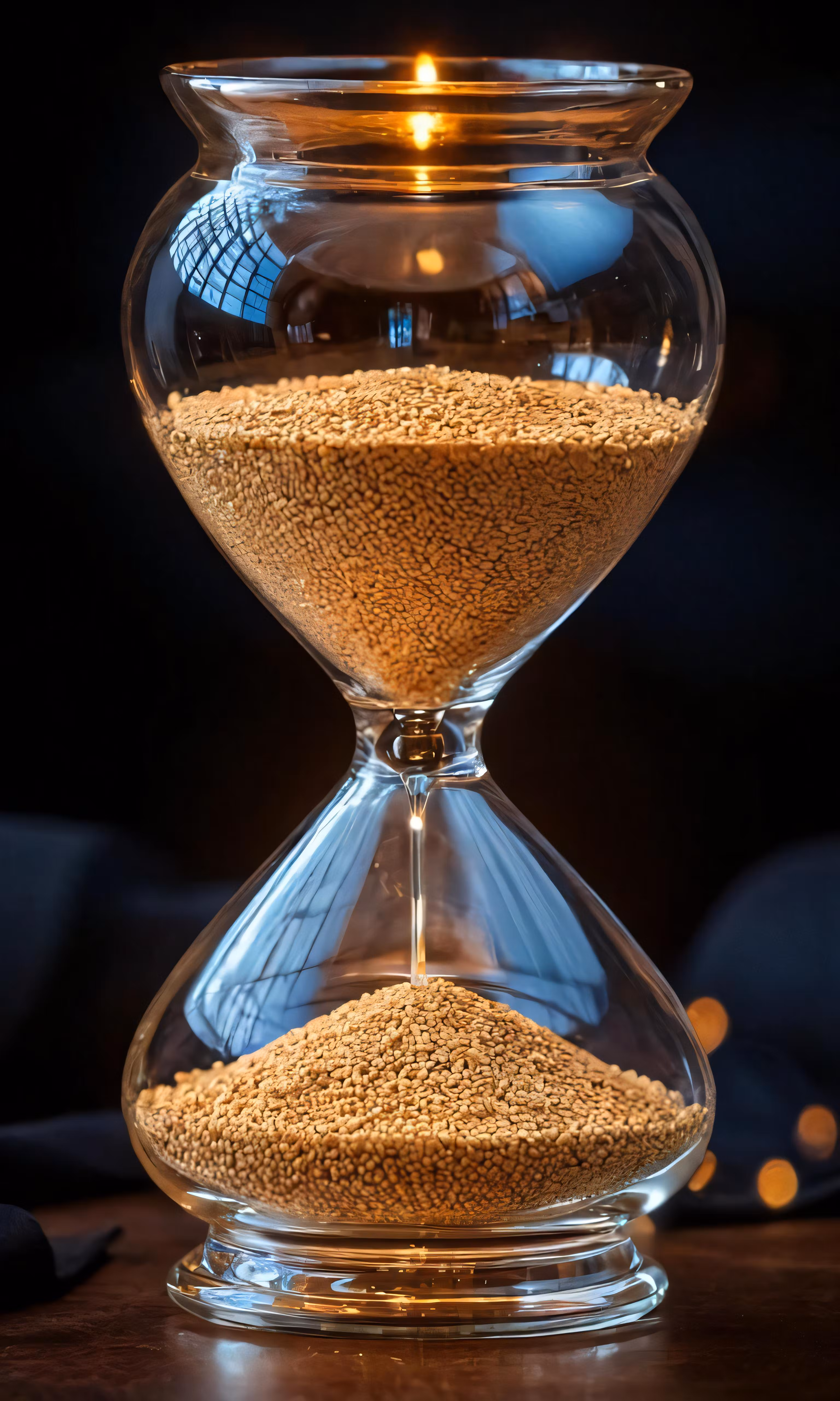 High resolution picture, free to use, a sand clock sitting on top of a table