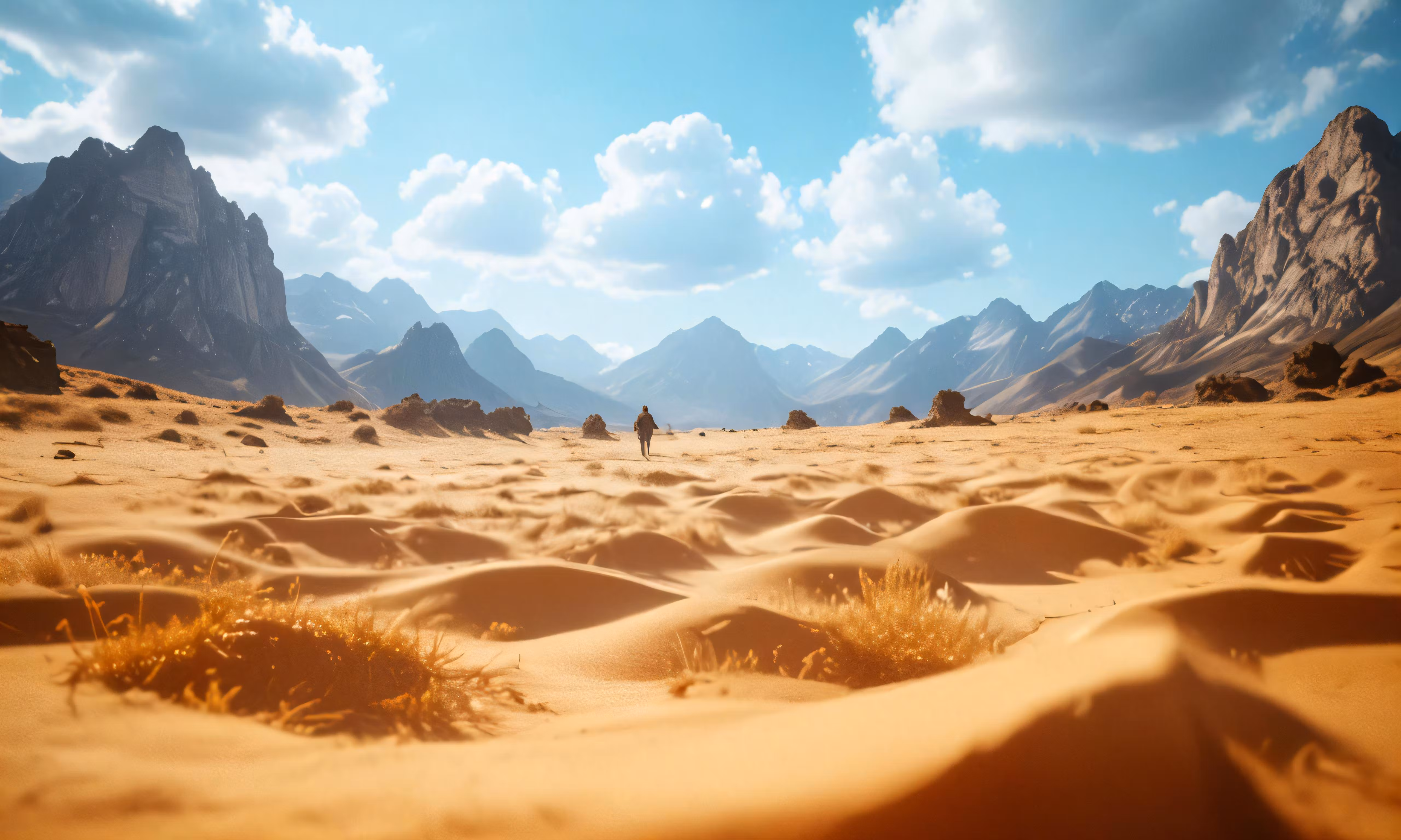 High resolution picture, free to use, a sandy landscape with some mountains in the distance