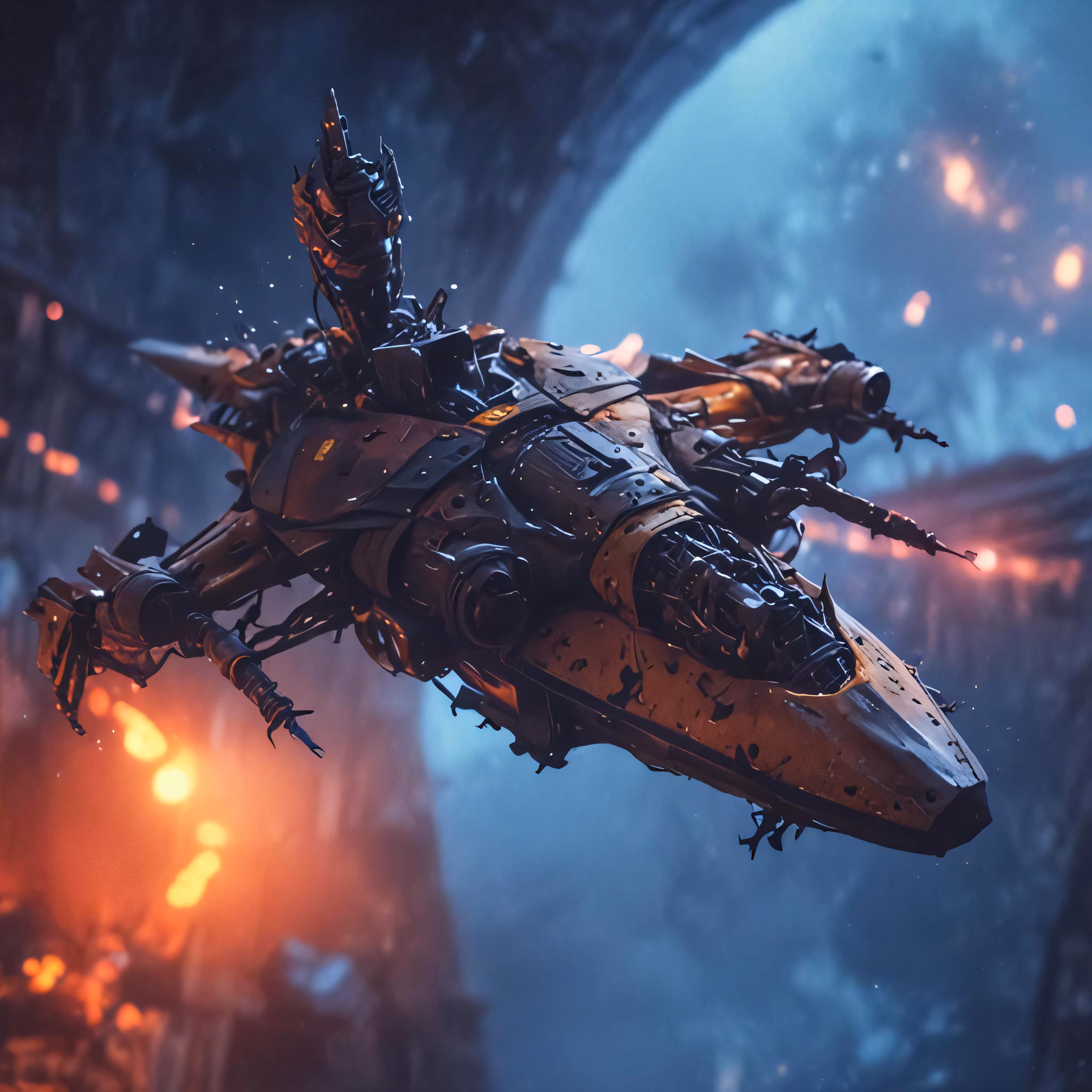 High resolution picture, free to use, a sci   fi character flies through a space tunnel