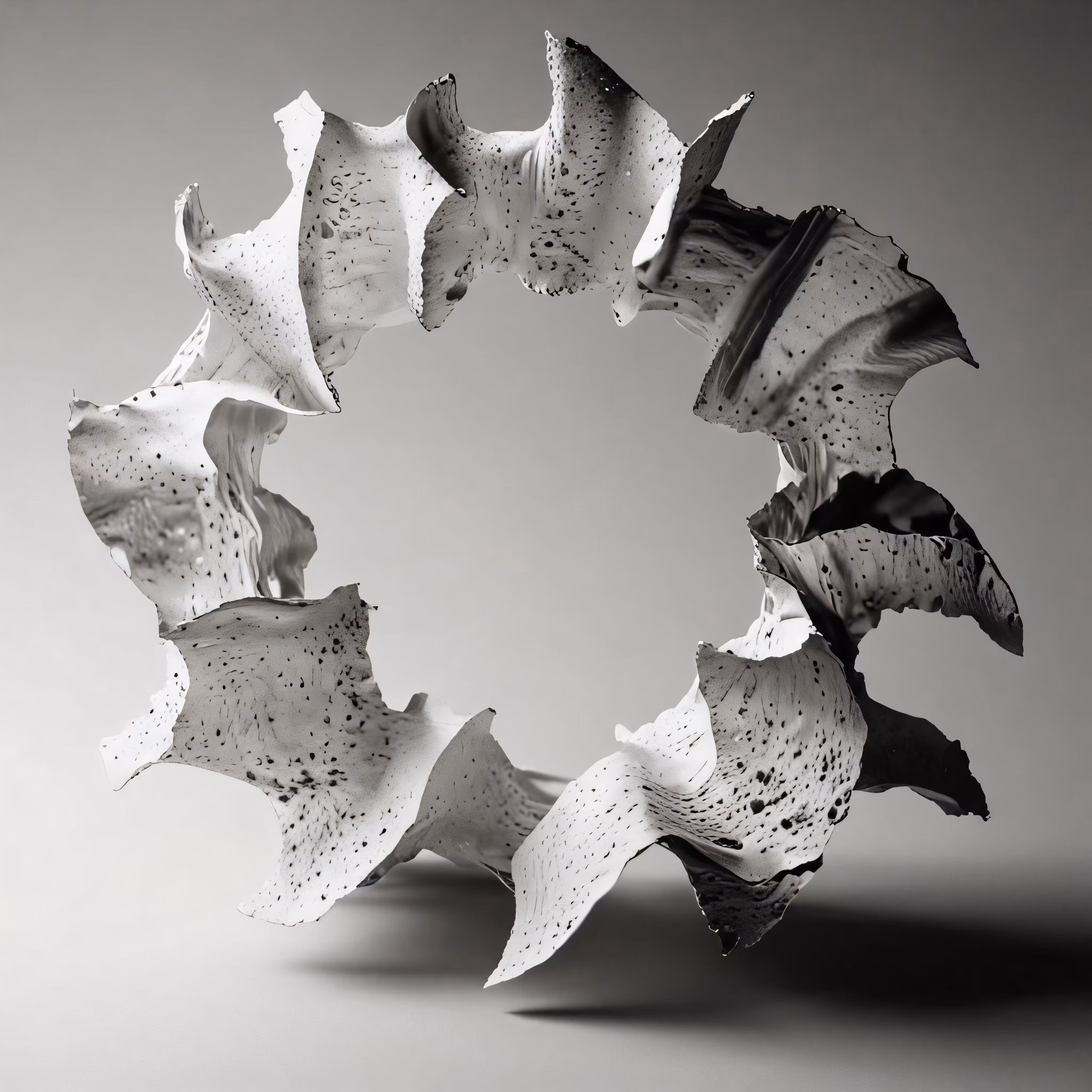 High resolution picture, free to use, a sculpture made with white flowers sitting in the middle of a floor