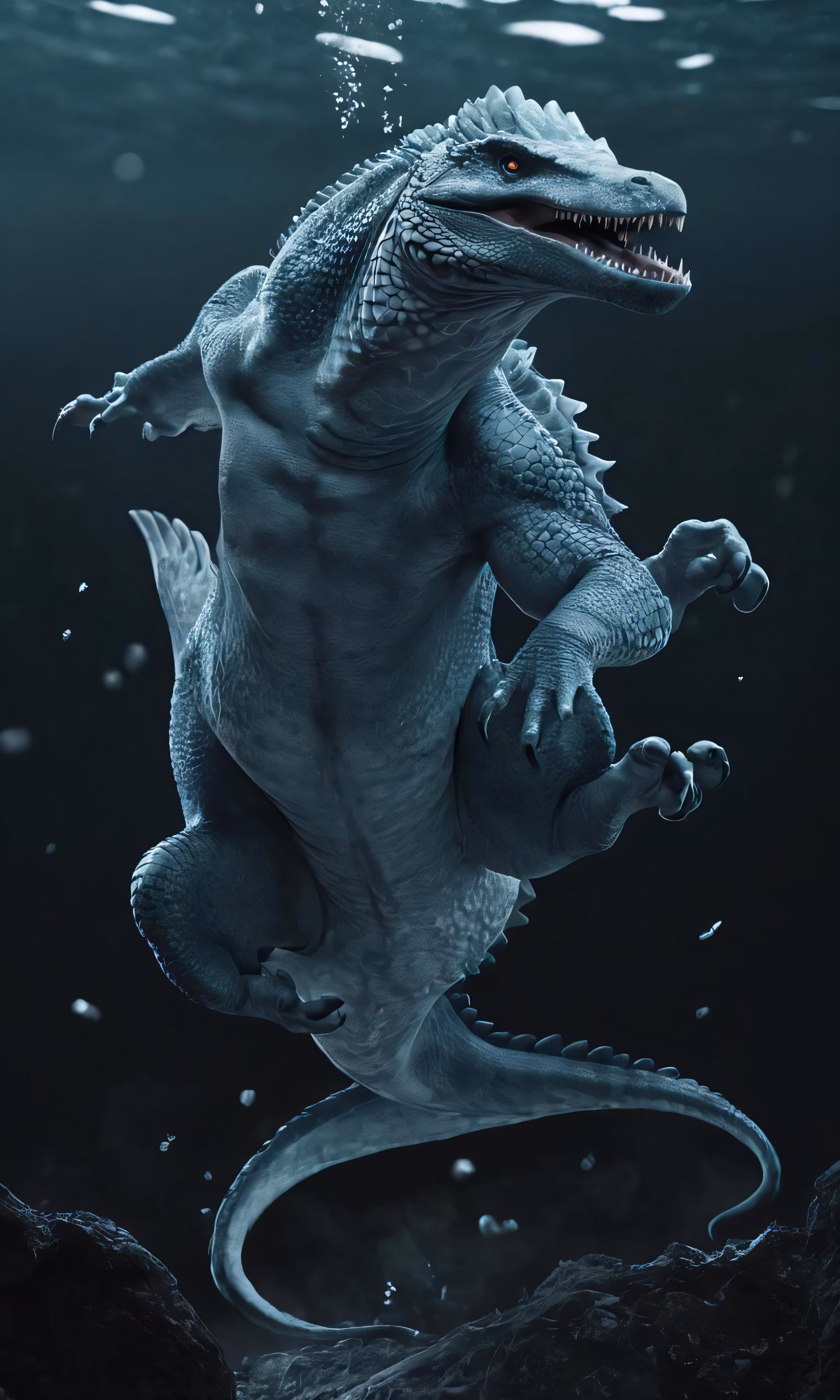 High resolution picture, free to use, a sea dragon jumping above the water and breaking up a rock