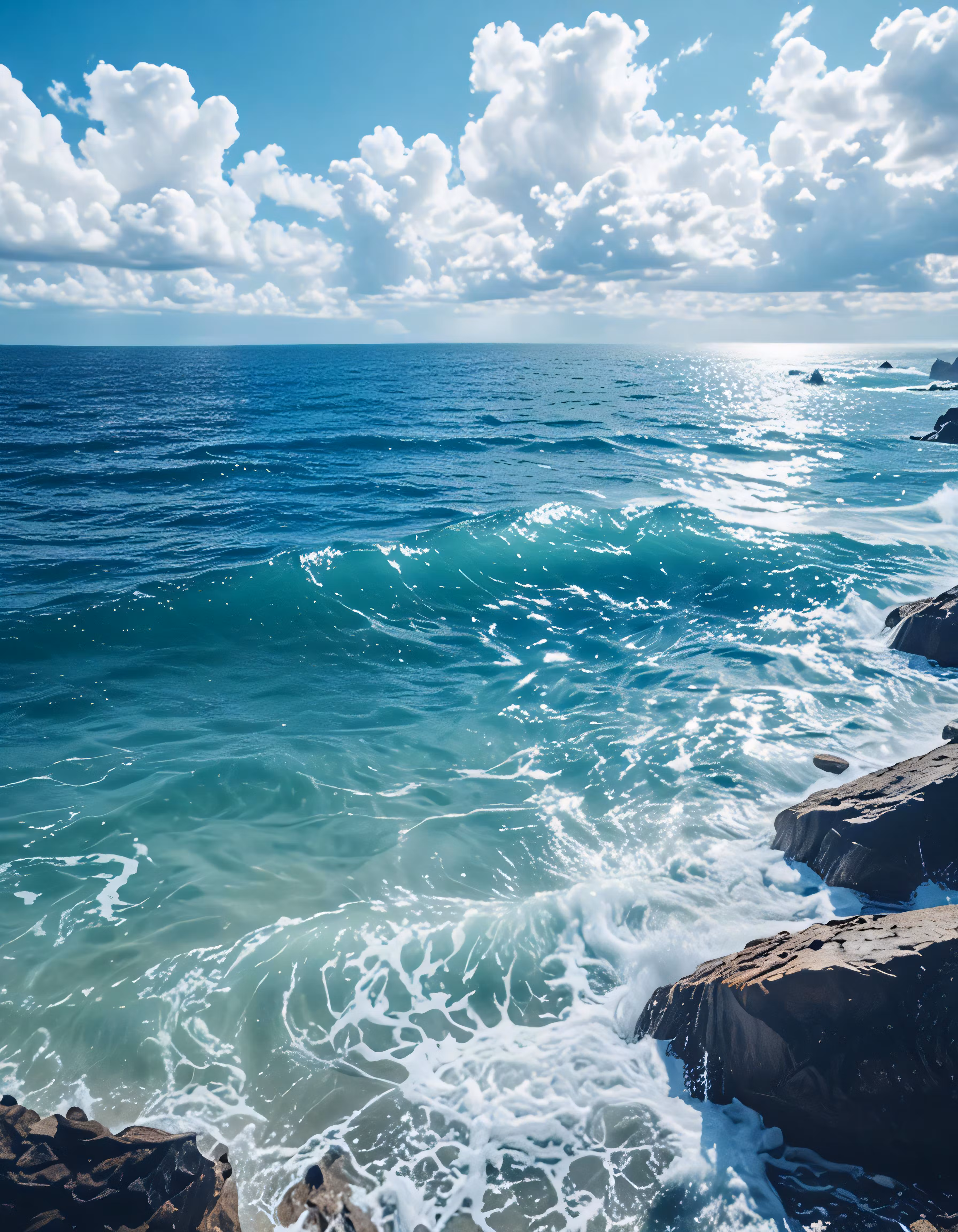 High resolution picture, free to use, a sea view with waves crashing in to shore