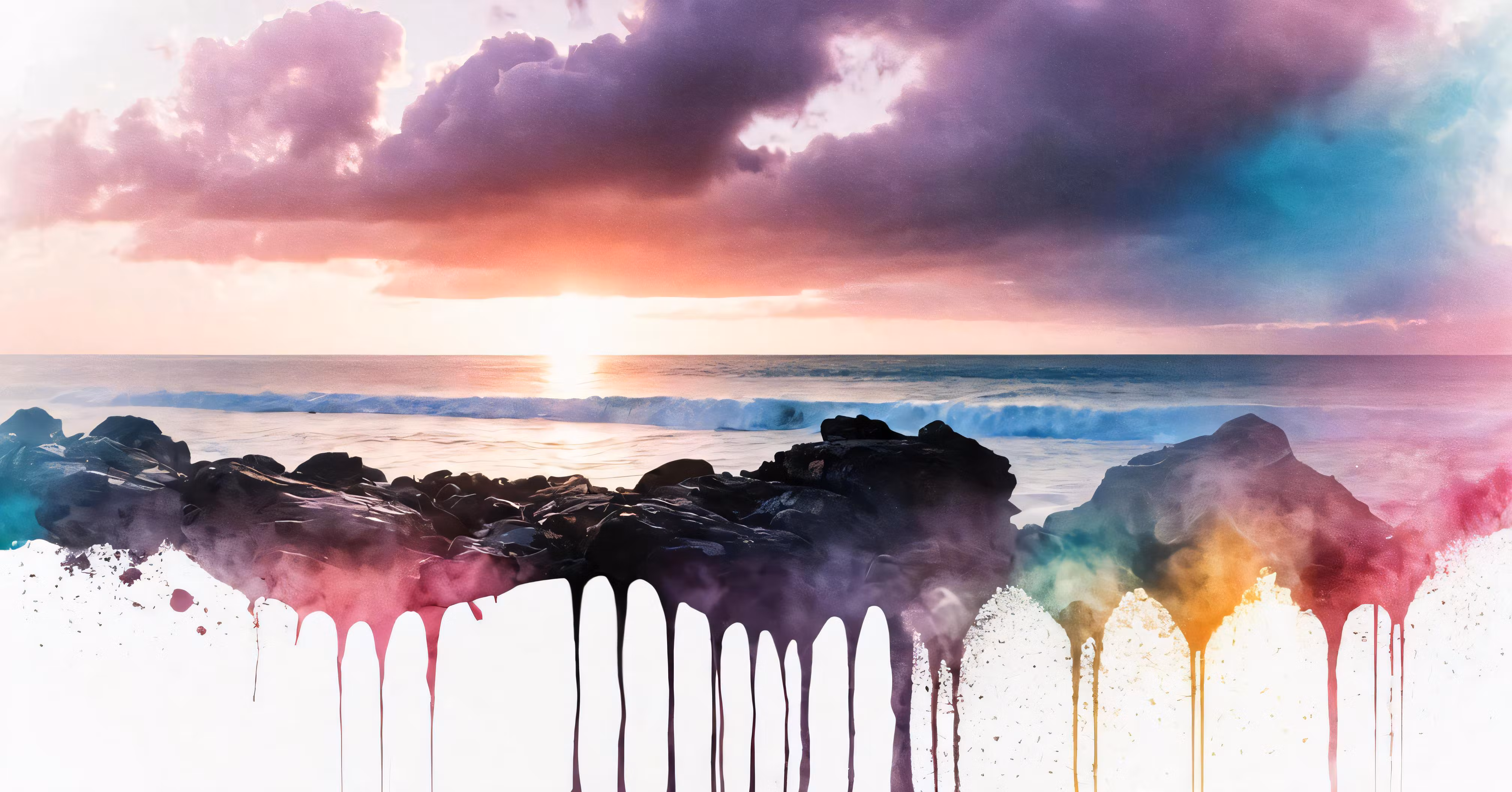 High resolution picture, free to use, a series of watercolor paintings depicting the sunset and waves