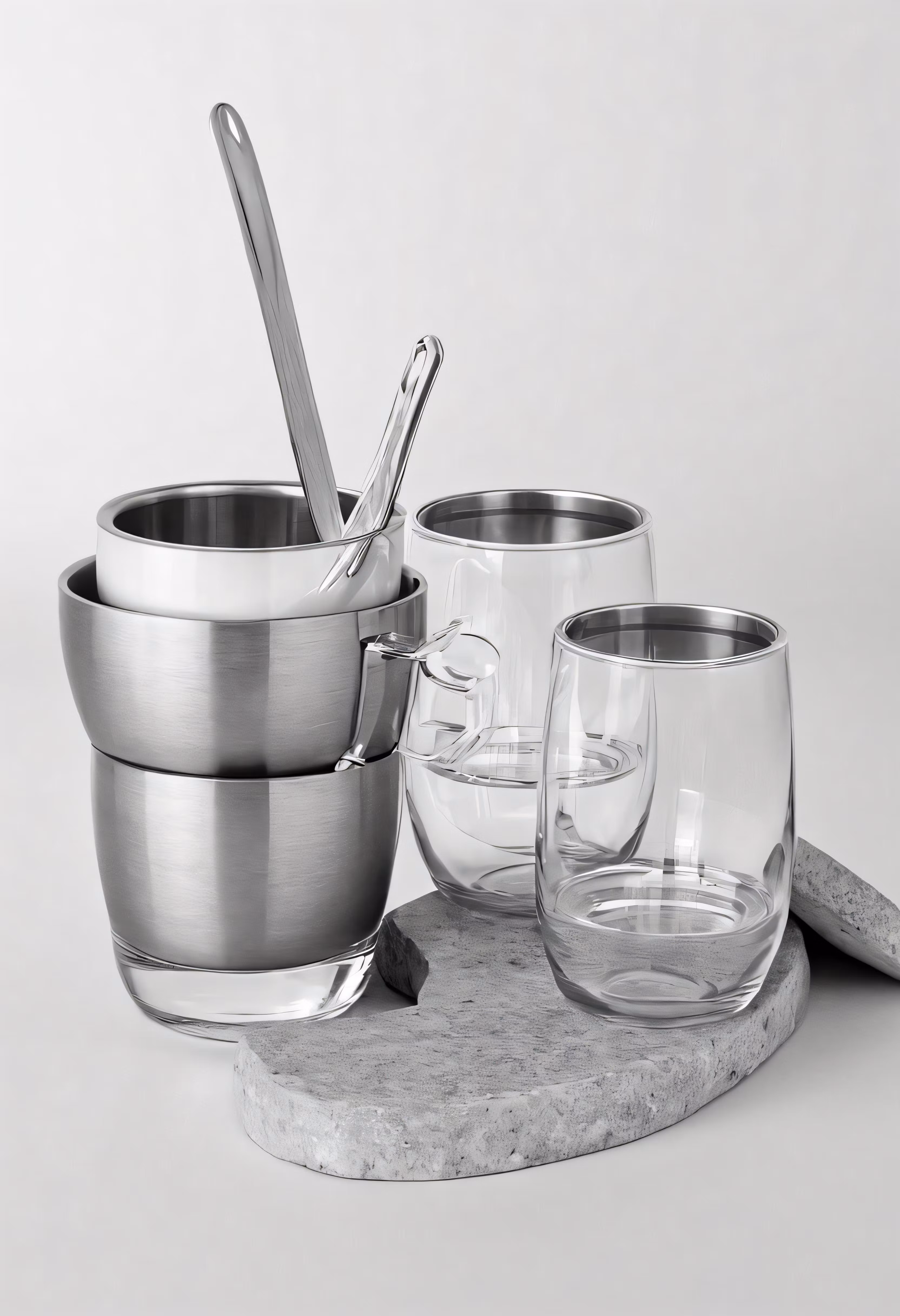 High resolution picture, free to use, a set of bowls and utensils on a counter