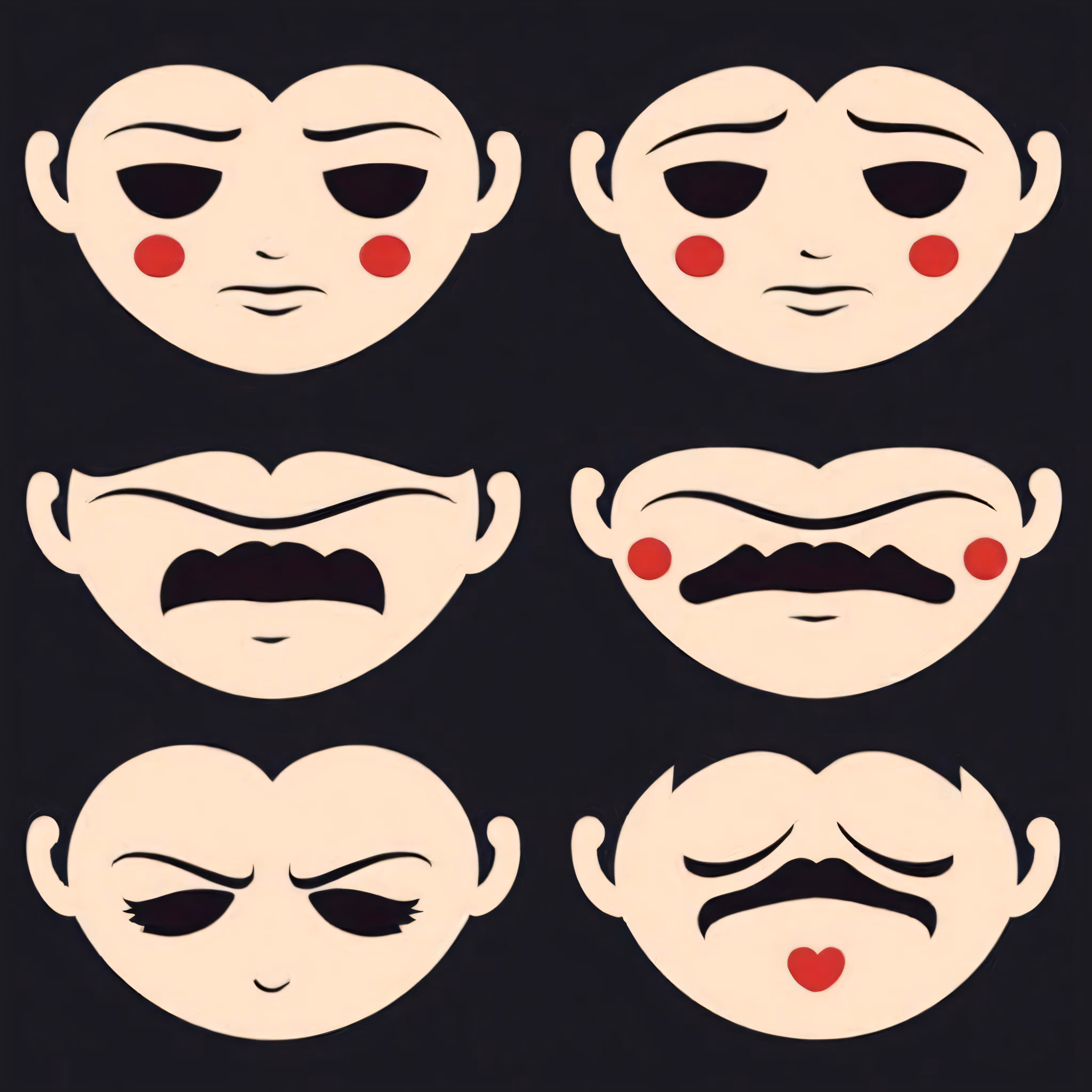 High resolution picture, free to use, a set of six faces with different expressions