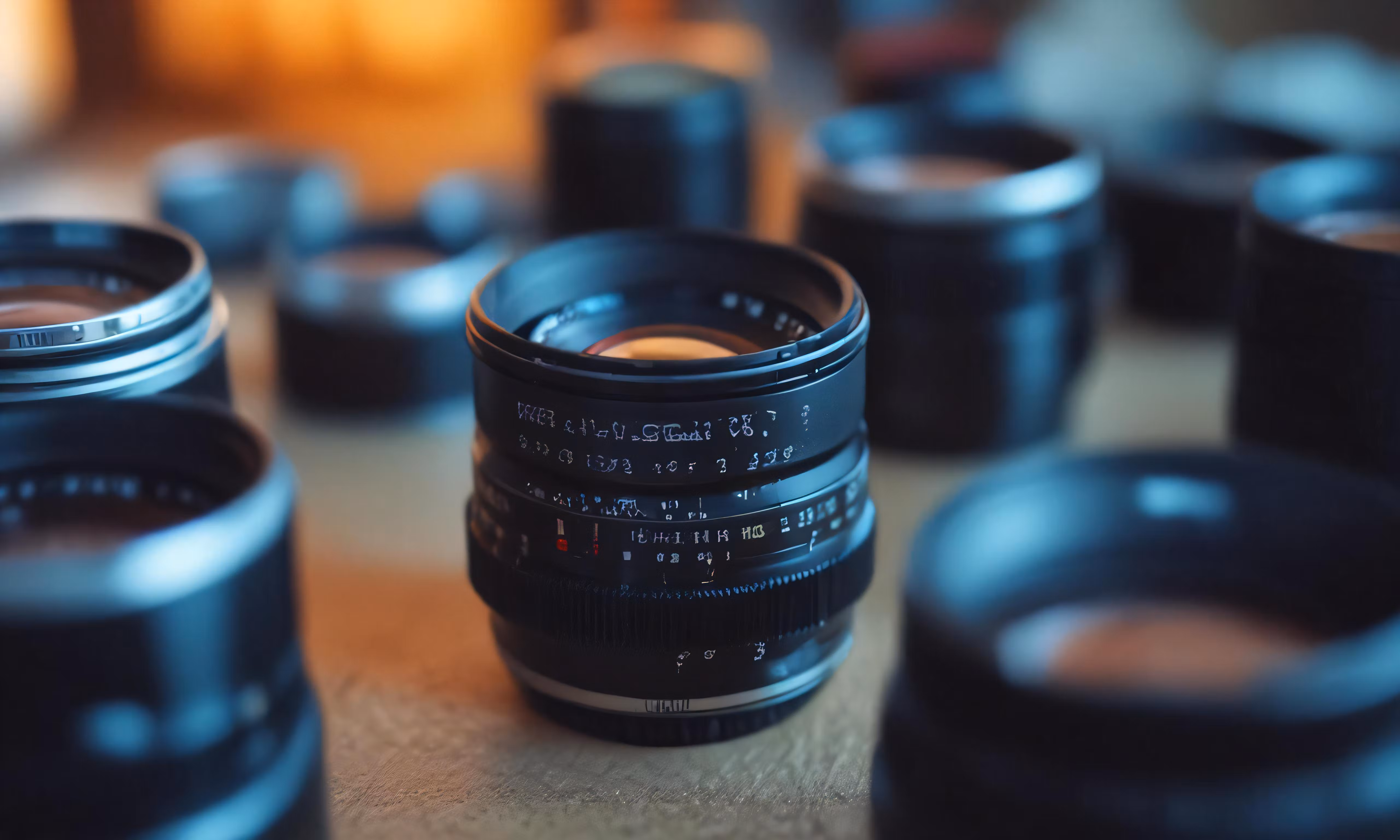 High resolution picture, free to use, a set of two lenses sitting on a table