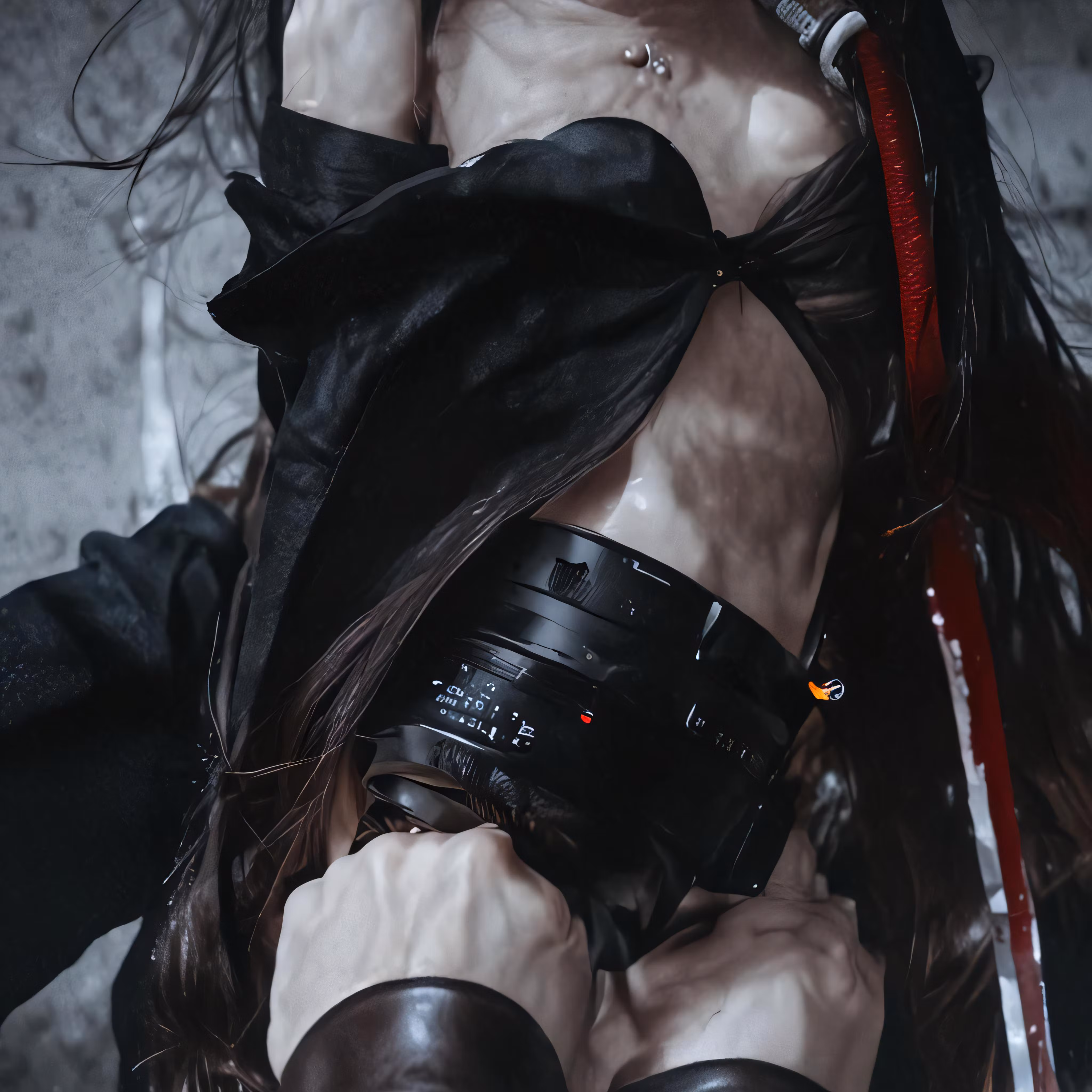 High resolution picture, free to use, a sexy woman dressed in black holding a camera