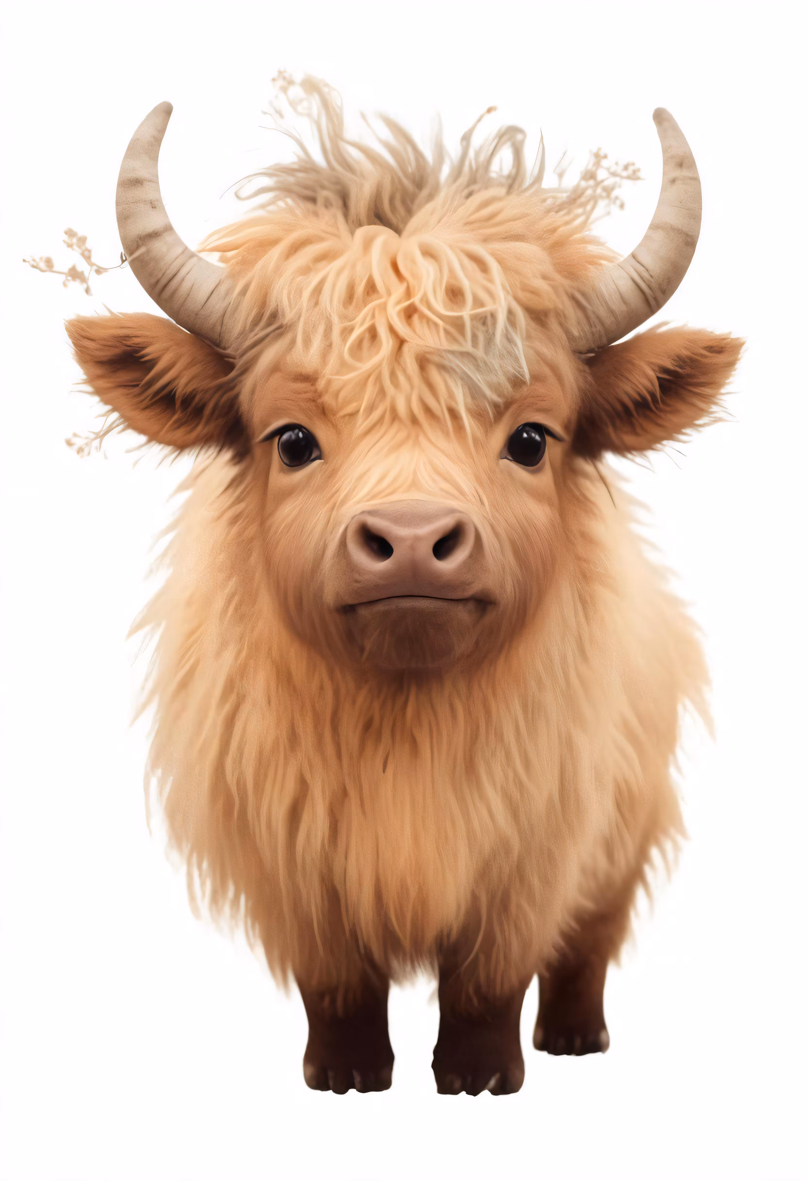 High resolution picture, free to use, a shaggy brown bull with big horns standing up