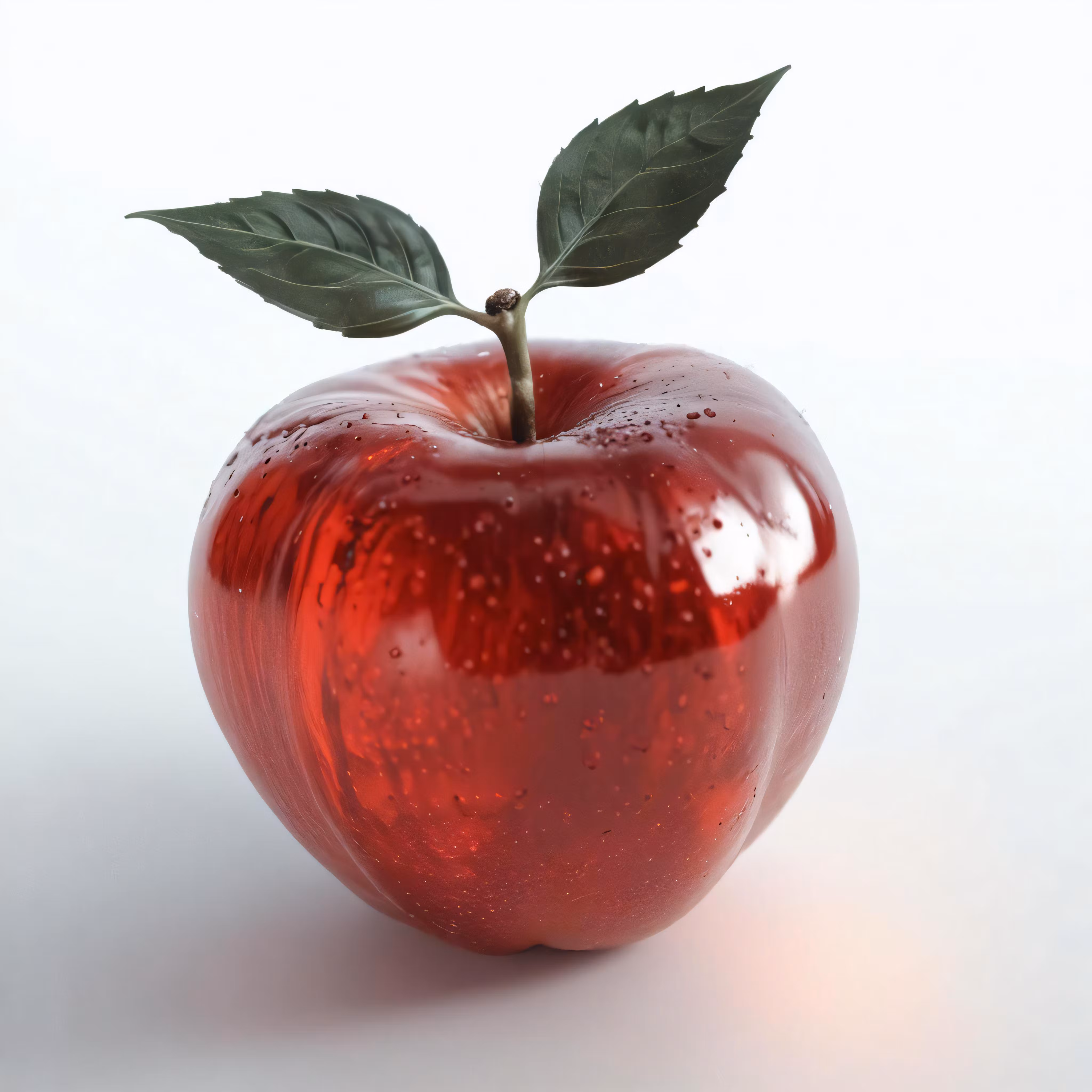 High resolution picture, free to use, a shiny red apple with a leaf on top of it