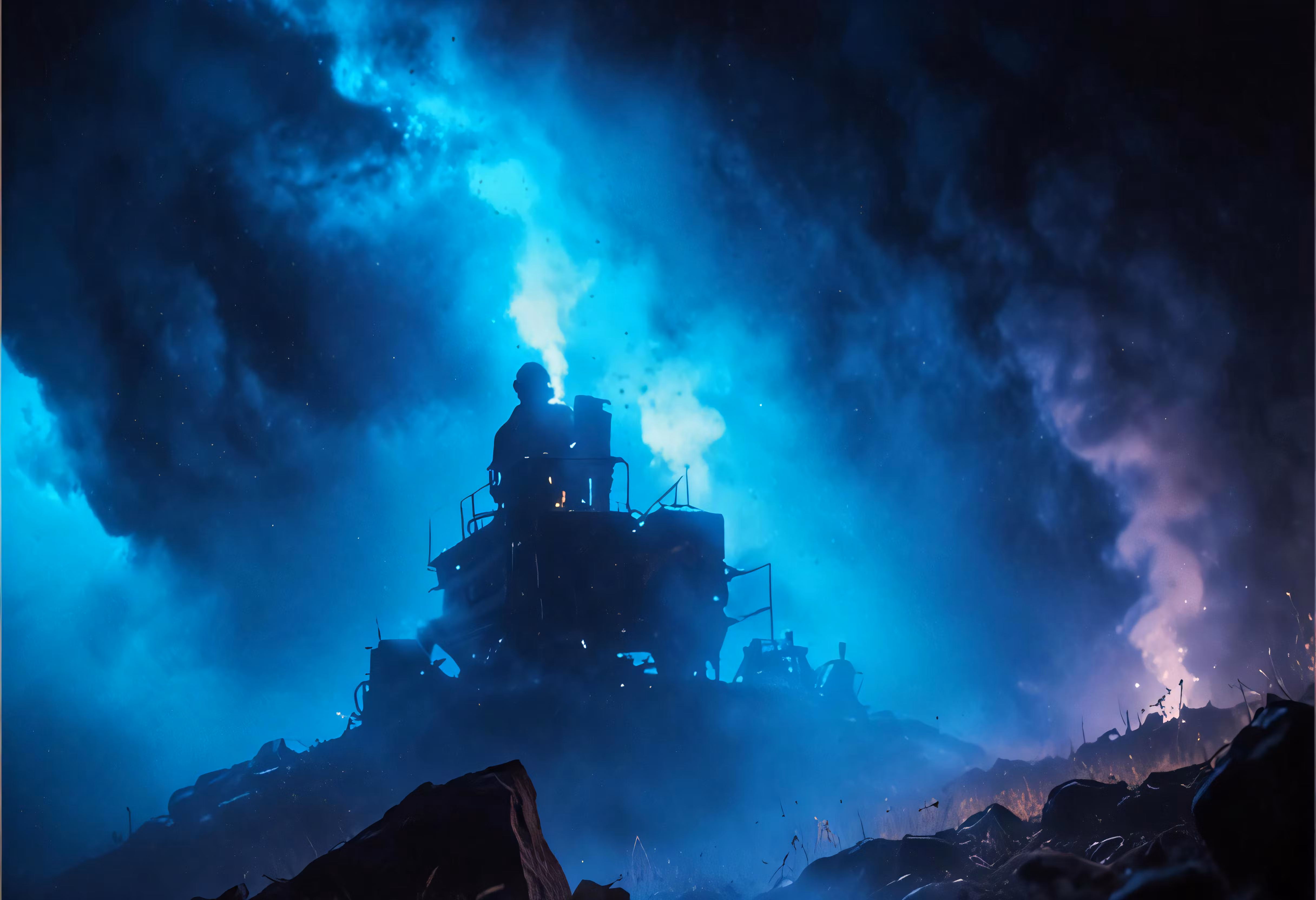 High resolution picture, free to use, a ship in the sky near some smoke and steam