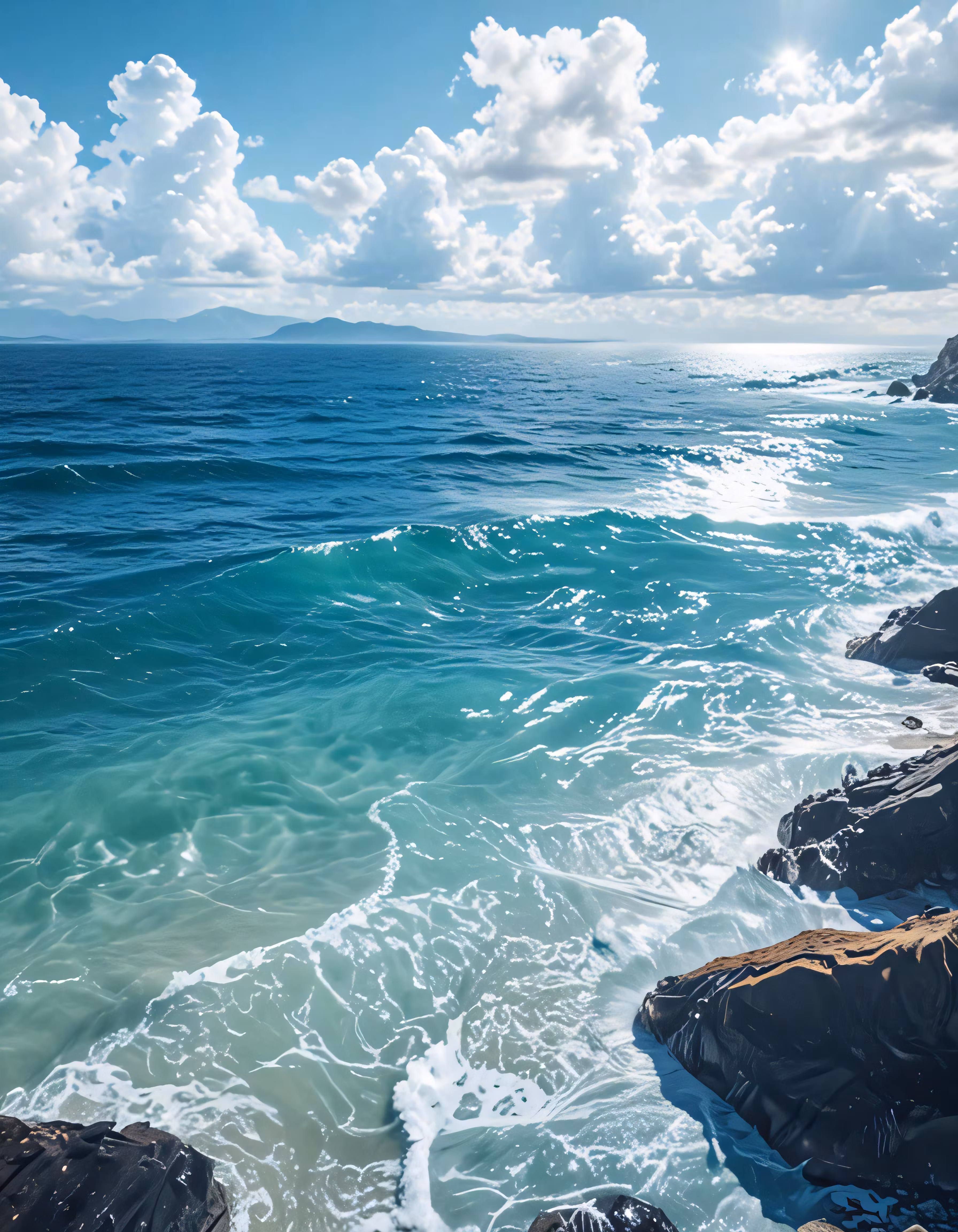 High resolution picture, free to use, a shoreline line with water and large rocks