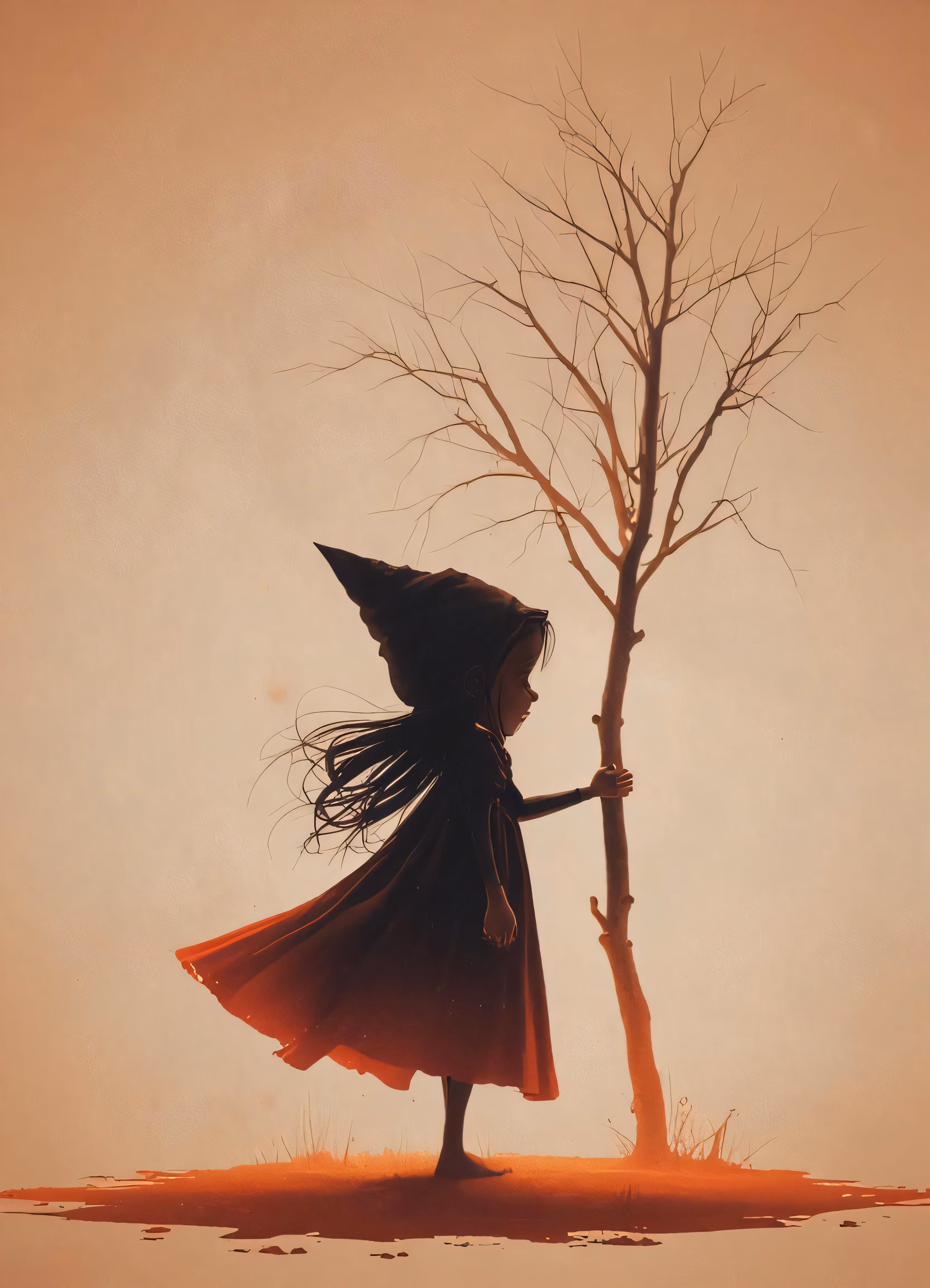 High resolution picture, free to use, a silhouette of a girl in a dress holding a parasol