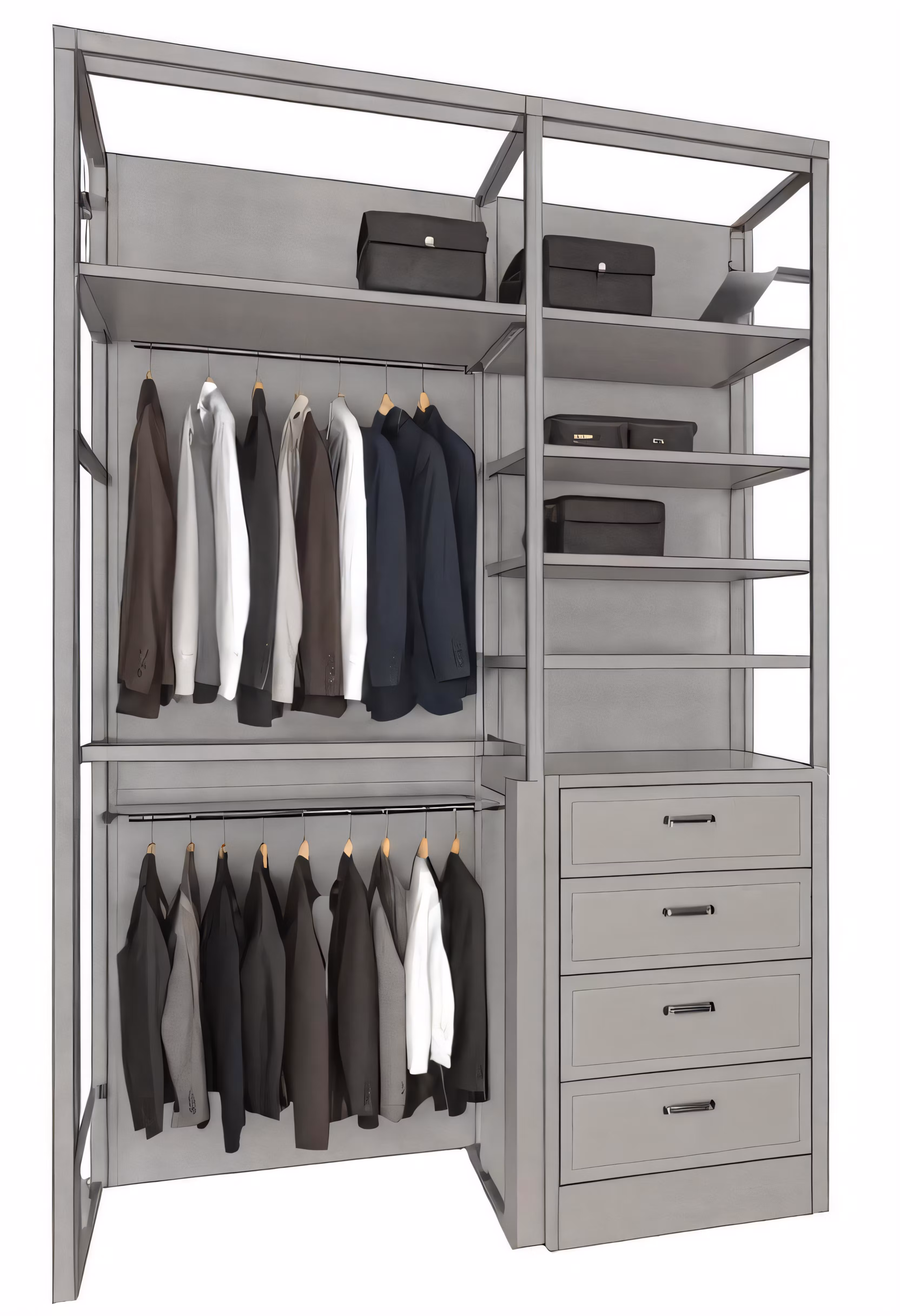 High resolution picture, free to use, a silver coat cabinet that has a chest and drawers