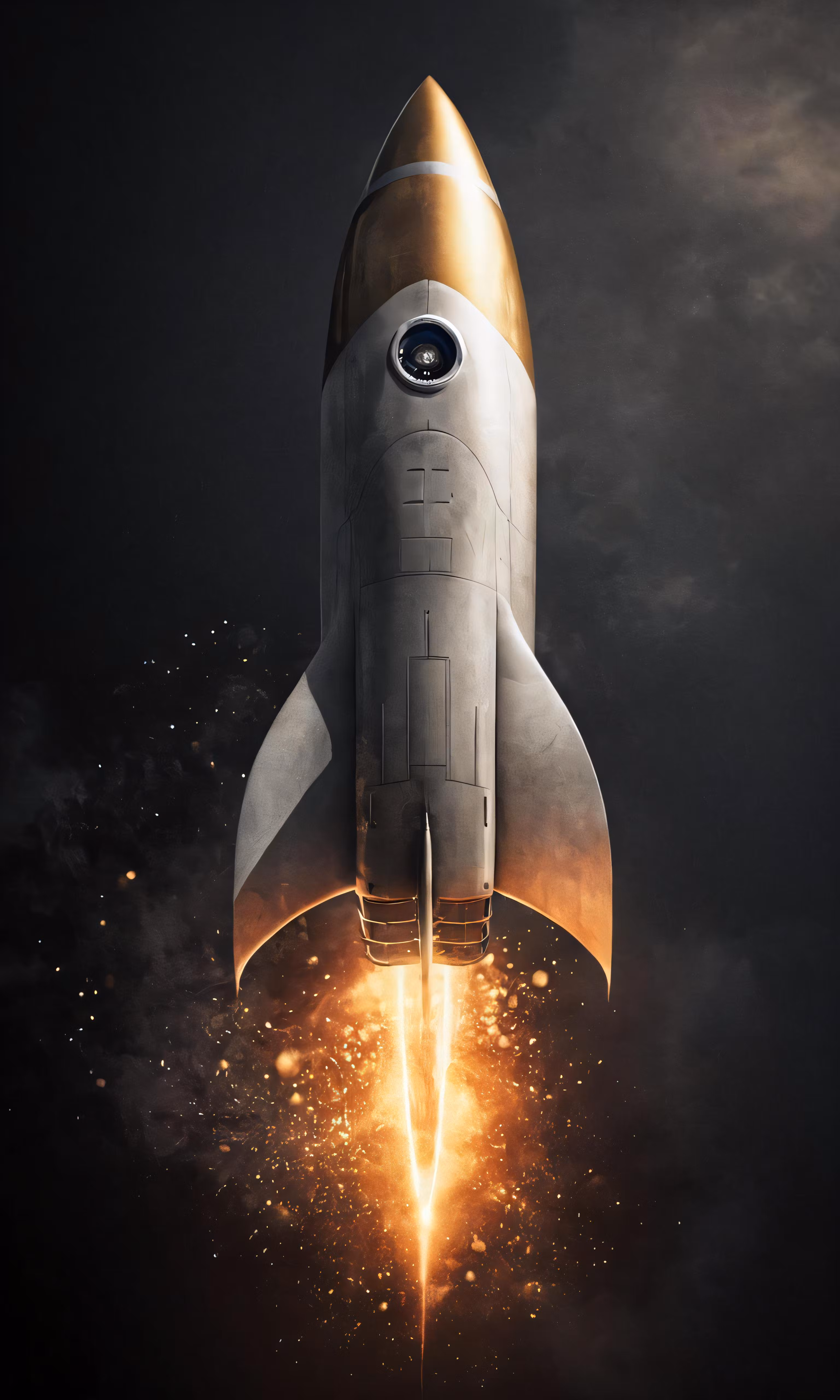 High resolution picture, free to use, a silver rocket is taking off in the sky