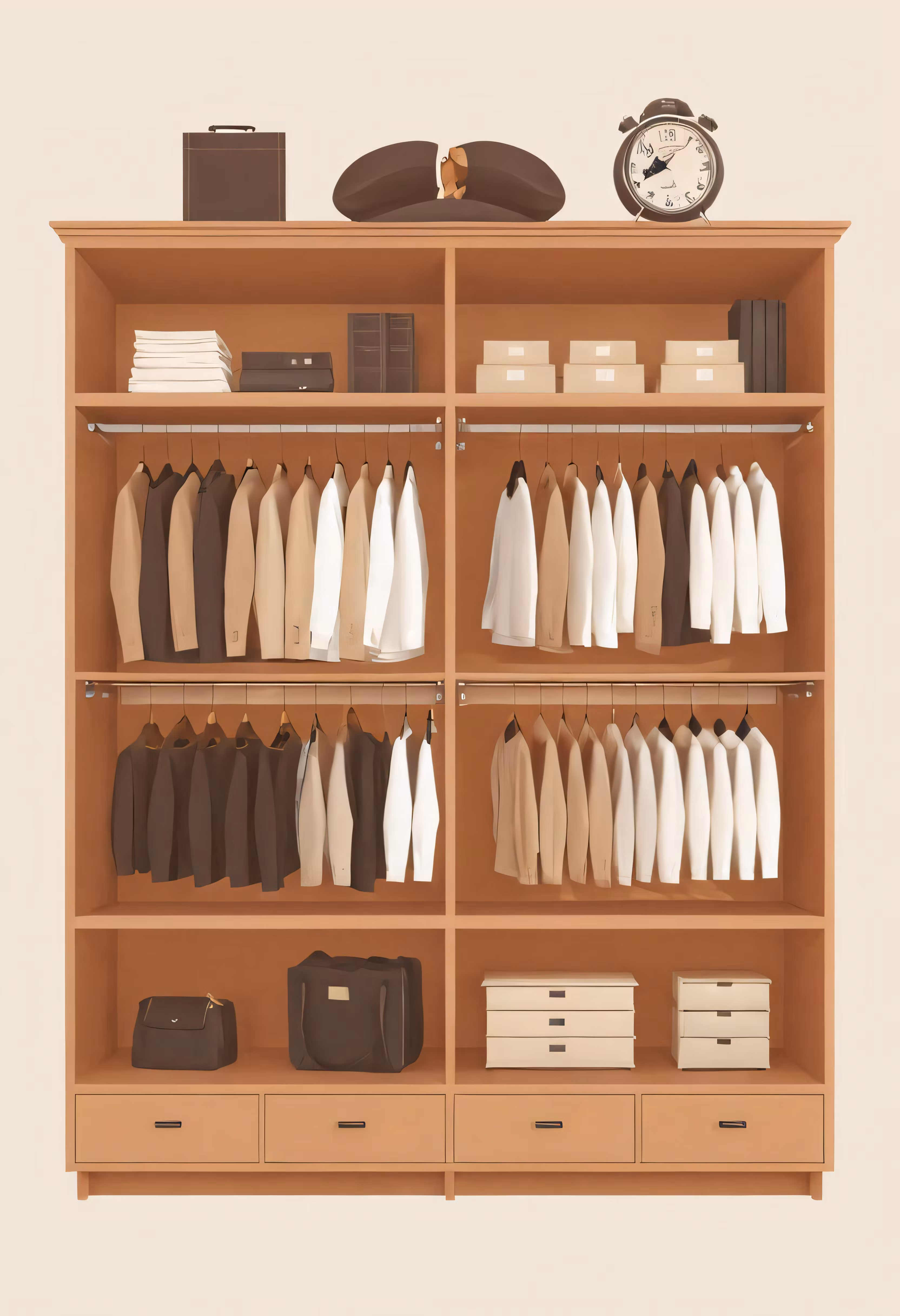 High resolution picture, free to use, a simple closet with many different things hanging on it