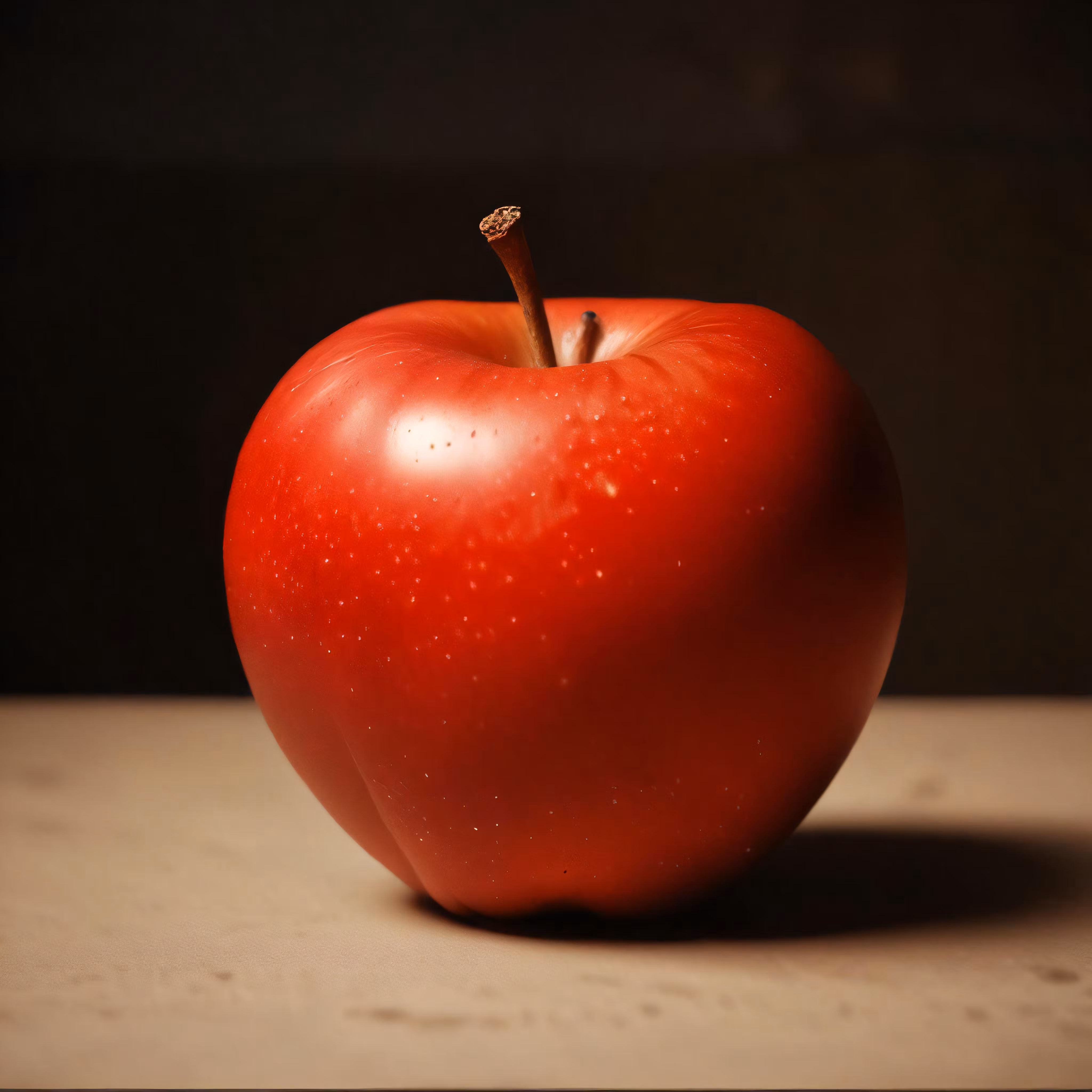 High resolution picture, free to use, a single apple sitting on a table in the dark