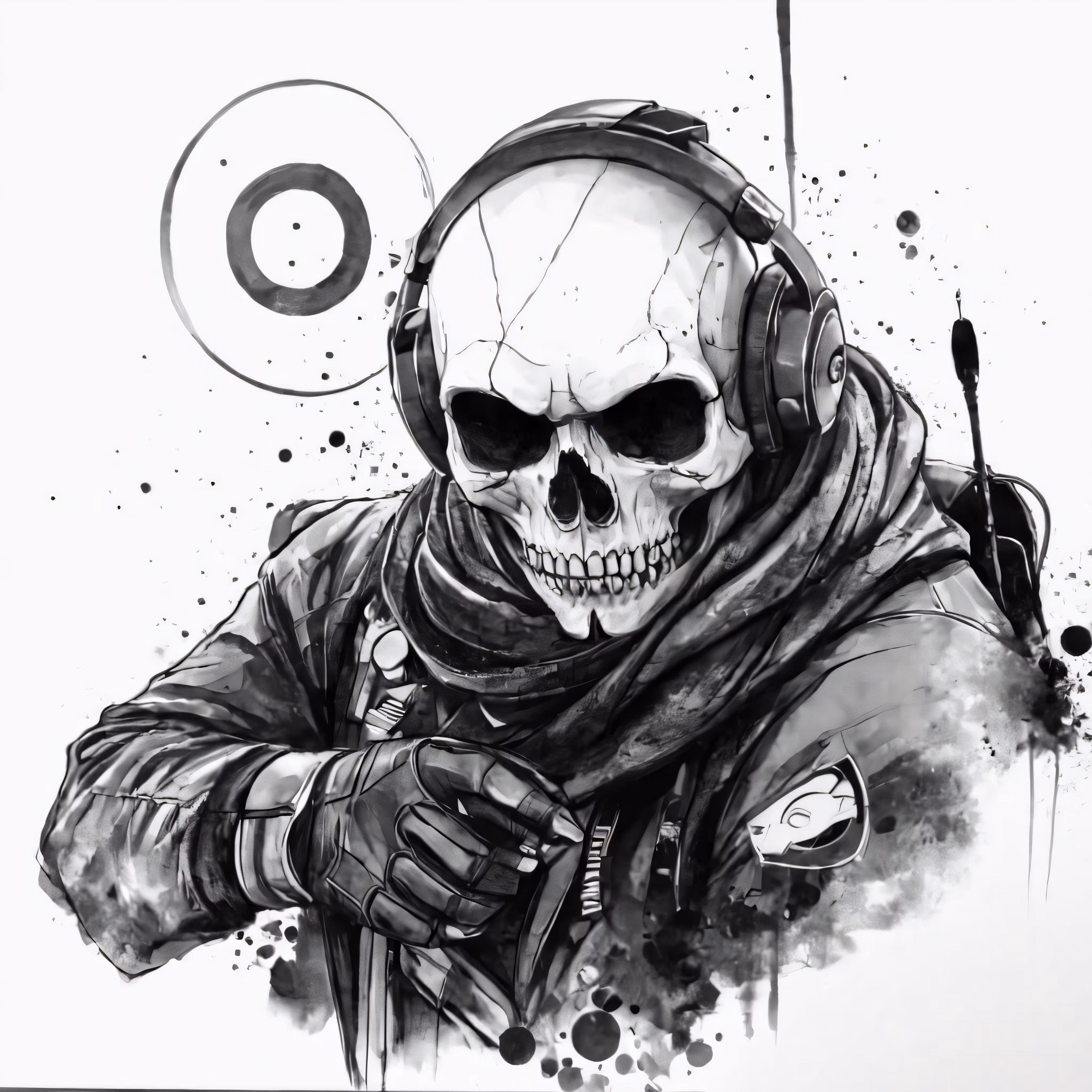 High resolution picture, free to use, a skeleton wearing headphones holding a microphone