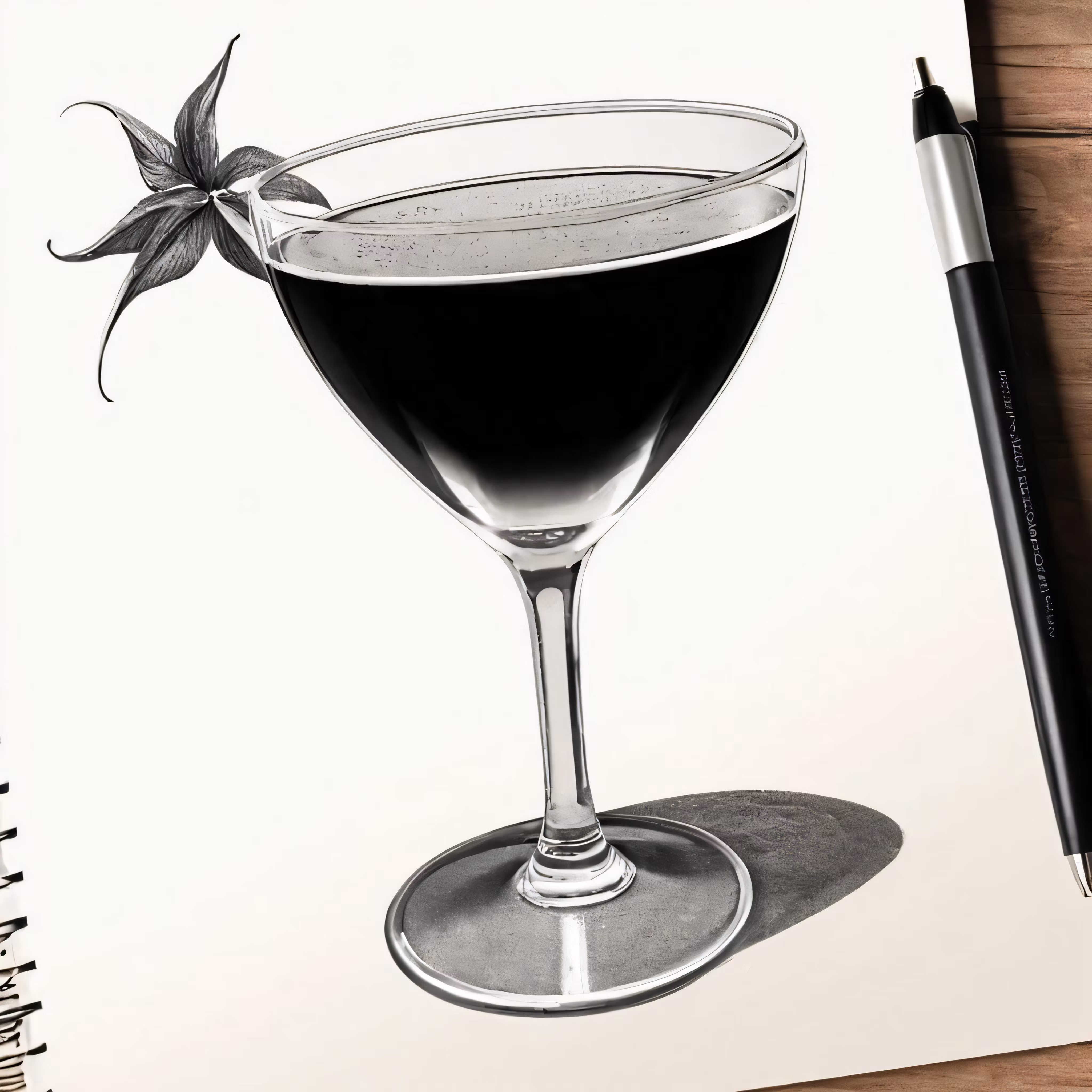 High resolution picture, free to use, a sketch of a drink with a slice of fruit