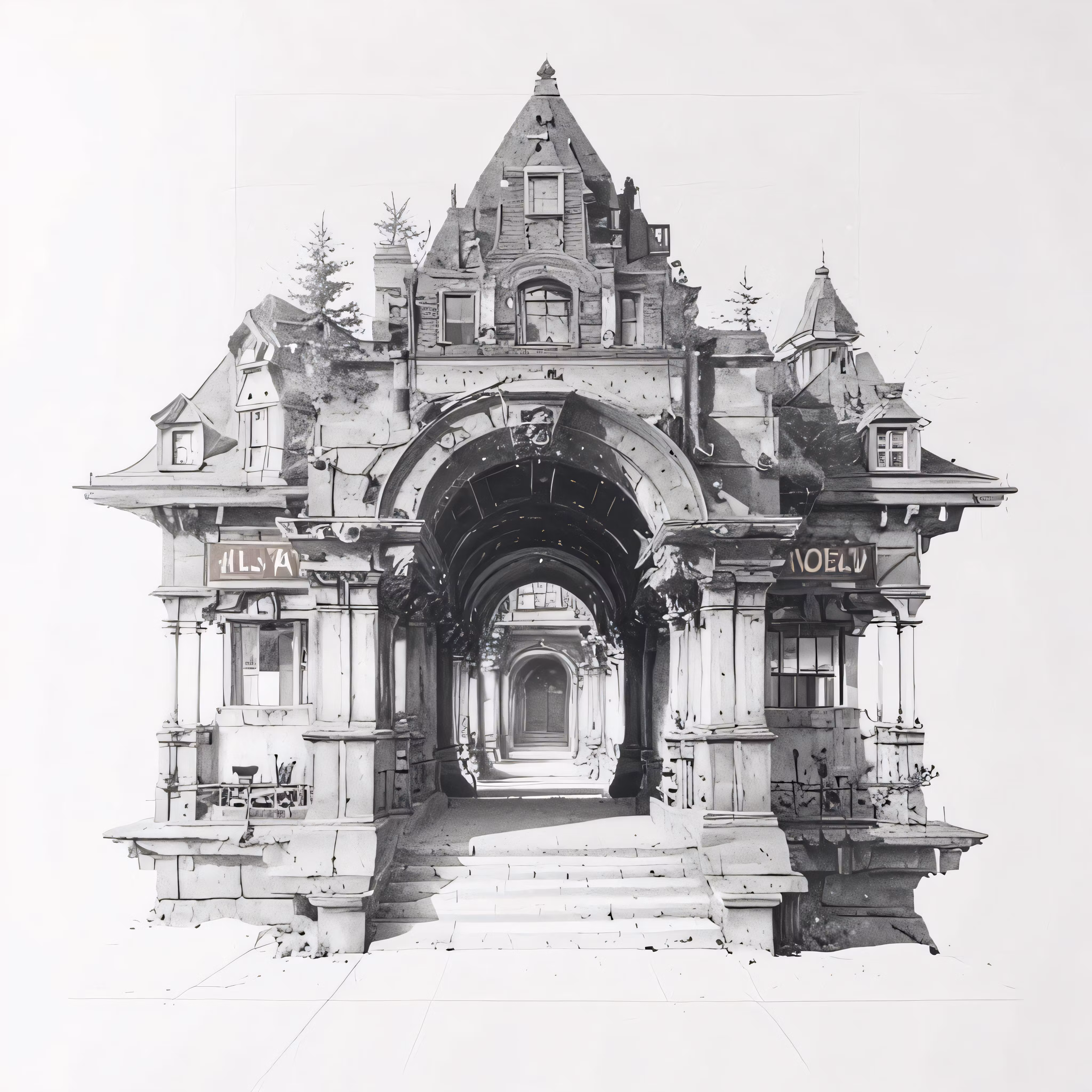High resolution picture, free to use, a sketch of an entry to the old city gate