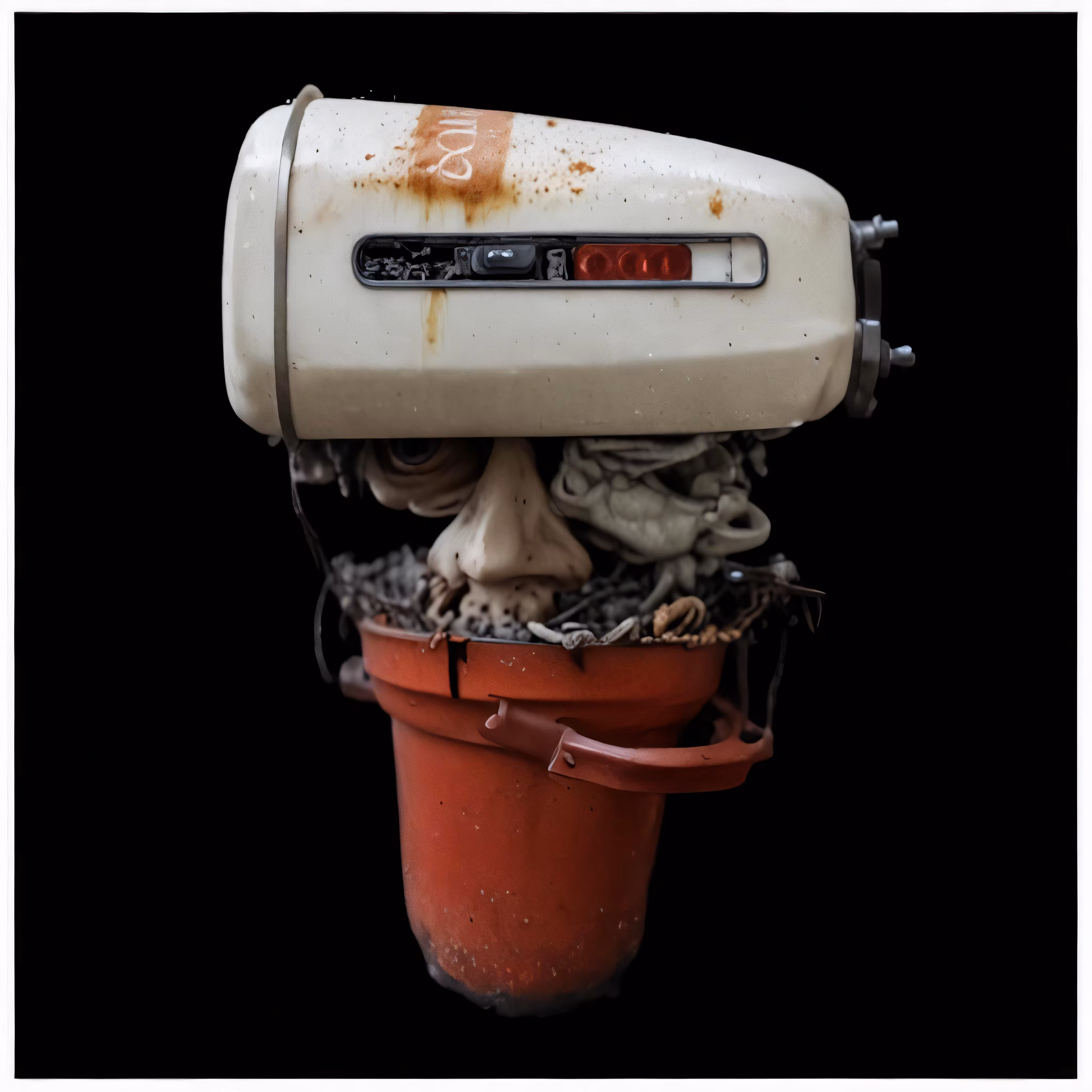 High resolution picture, free to use, a skull head on top of a container with an electrical device