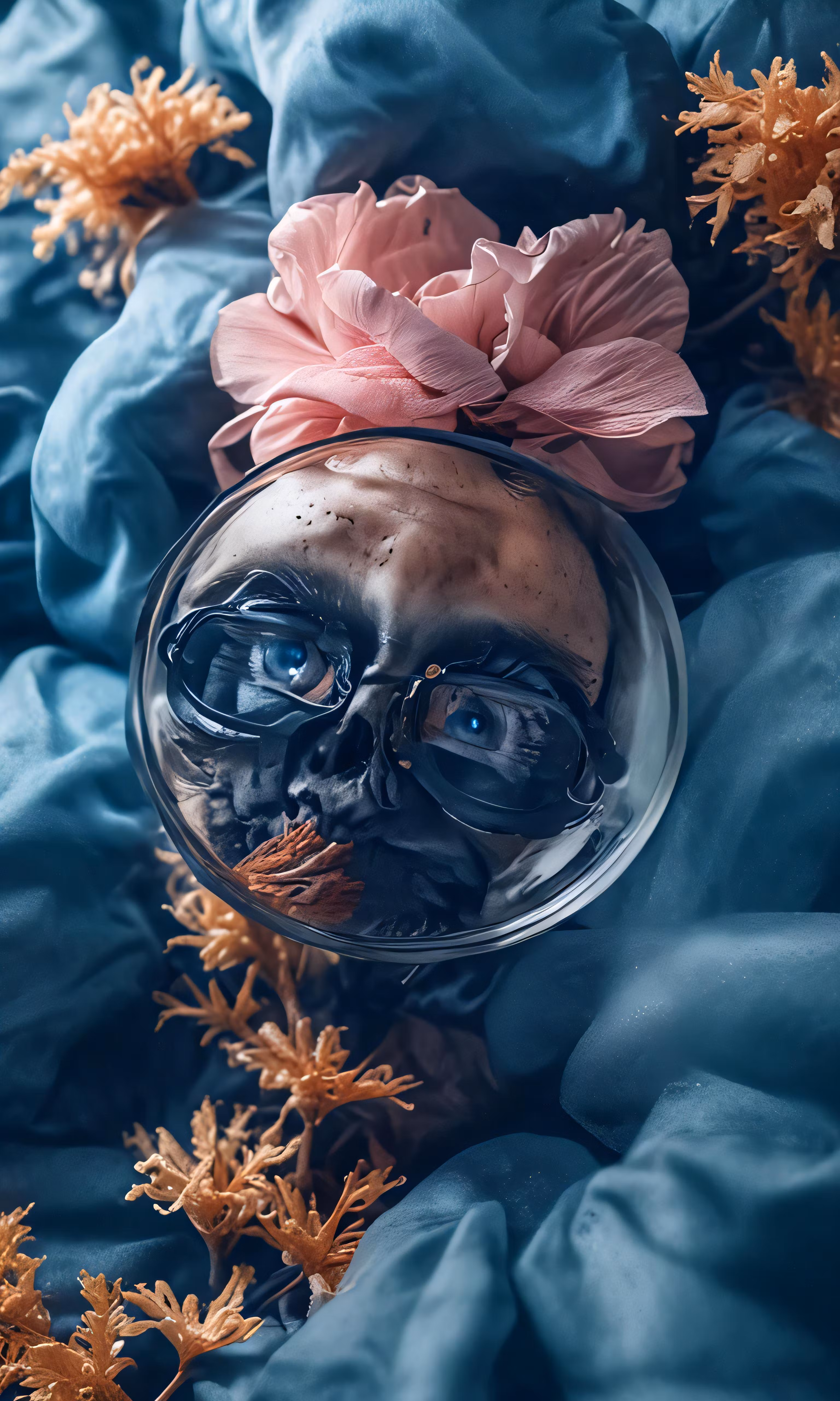 High resolution picture, free to use, a skull is in the middle of some flowers