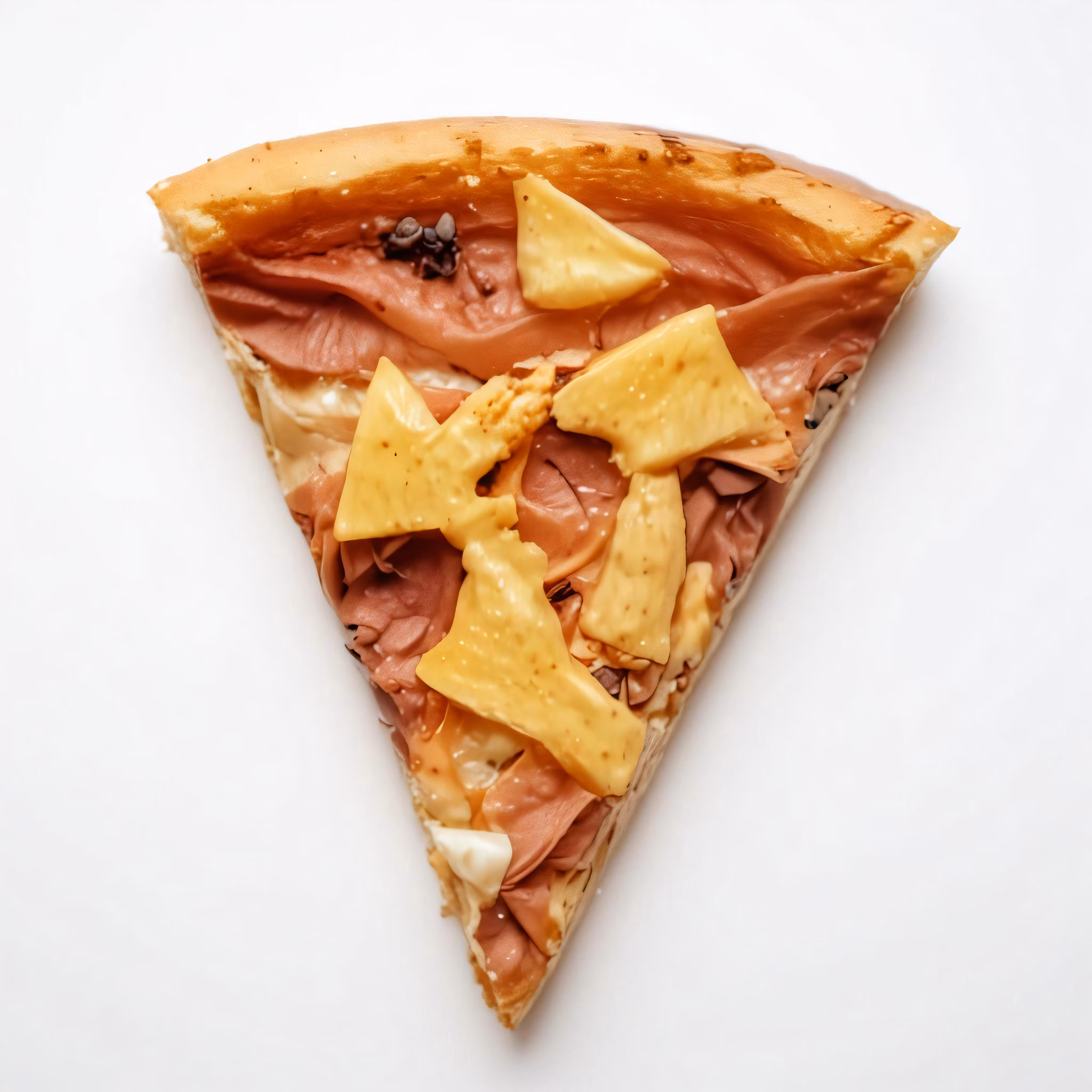 High resolution picture, free to use, a slice of pizza covered in cheese and meat