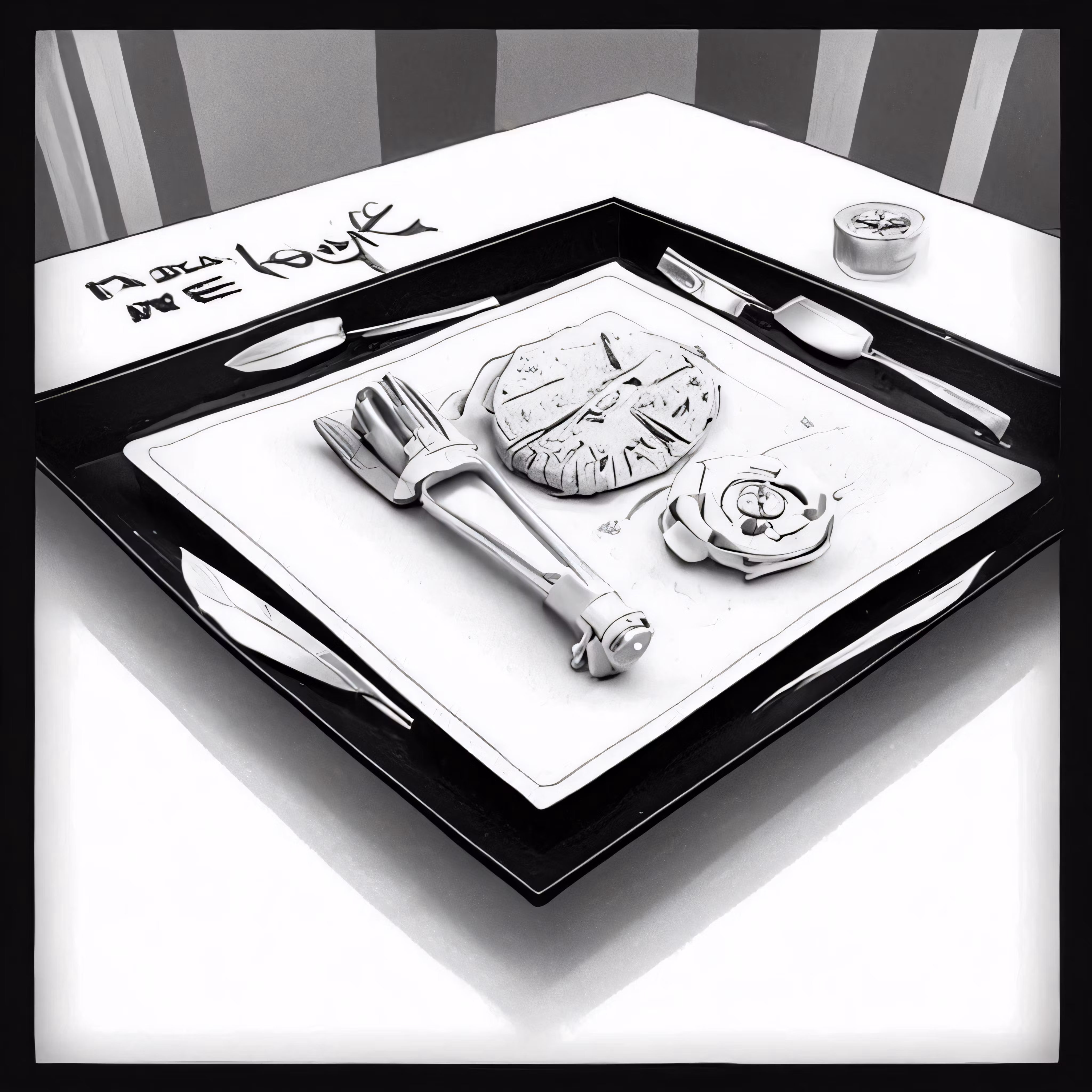 High resolution picture, free to use, a small black and white tray topped with a watch