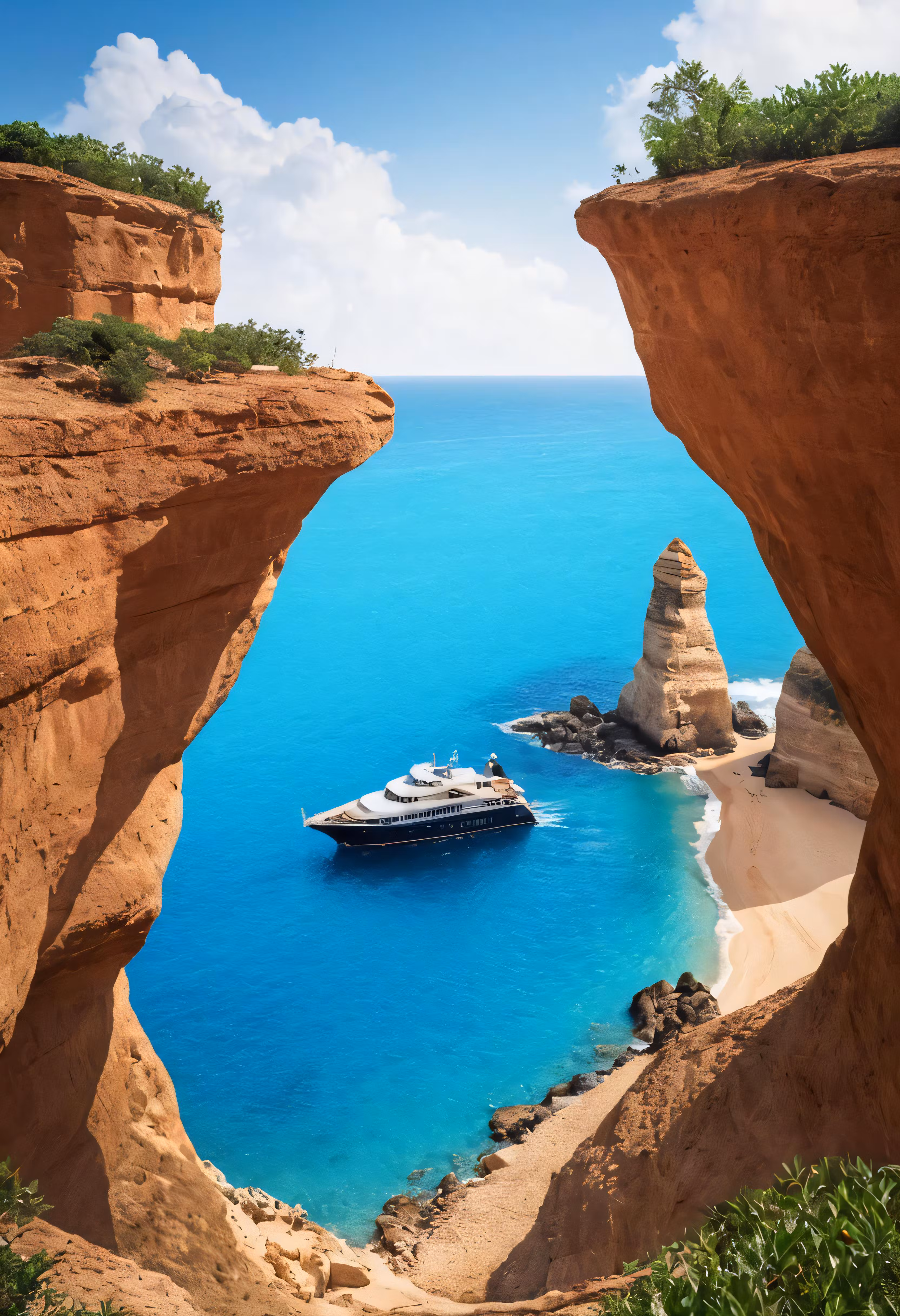 High resolution picture, free to use, a small boat is anchored in the blue ocean