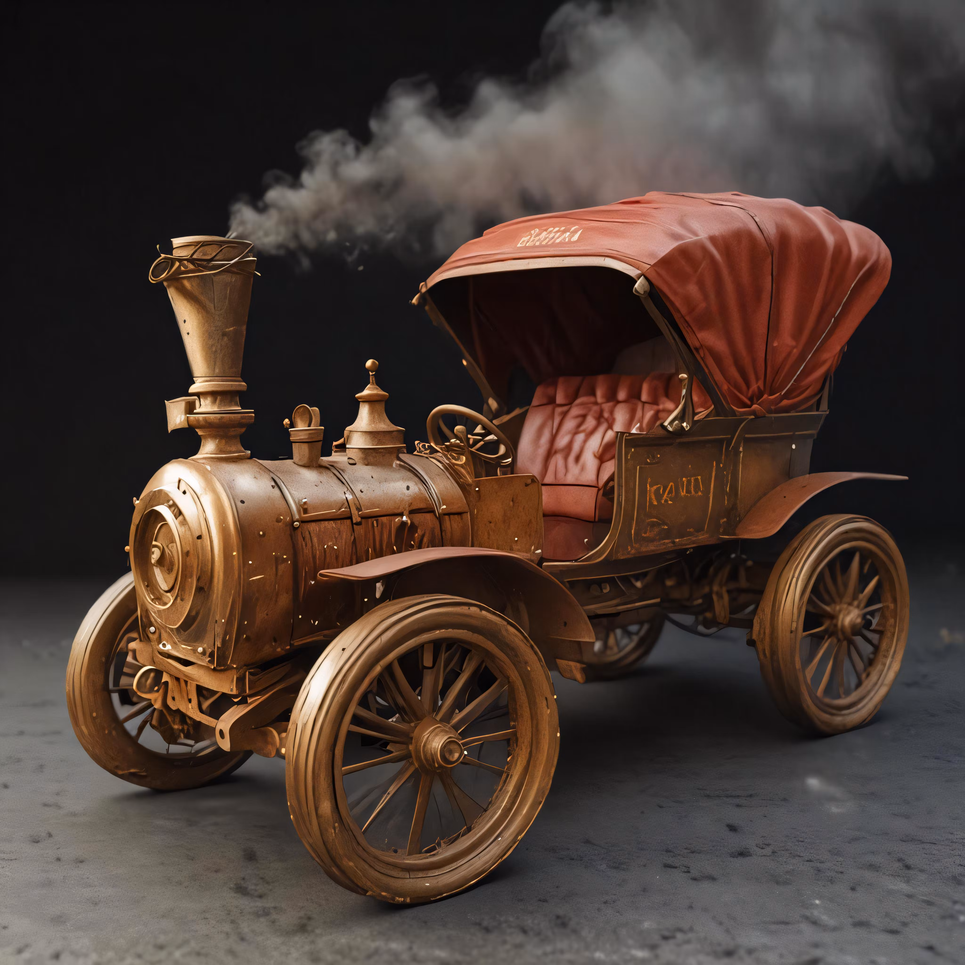 High resolution picture, free to use, a small brown car that is steam rising out of it
