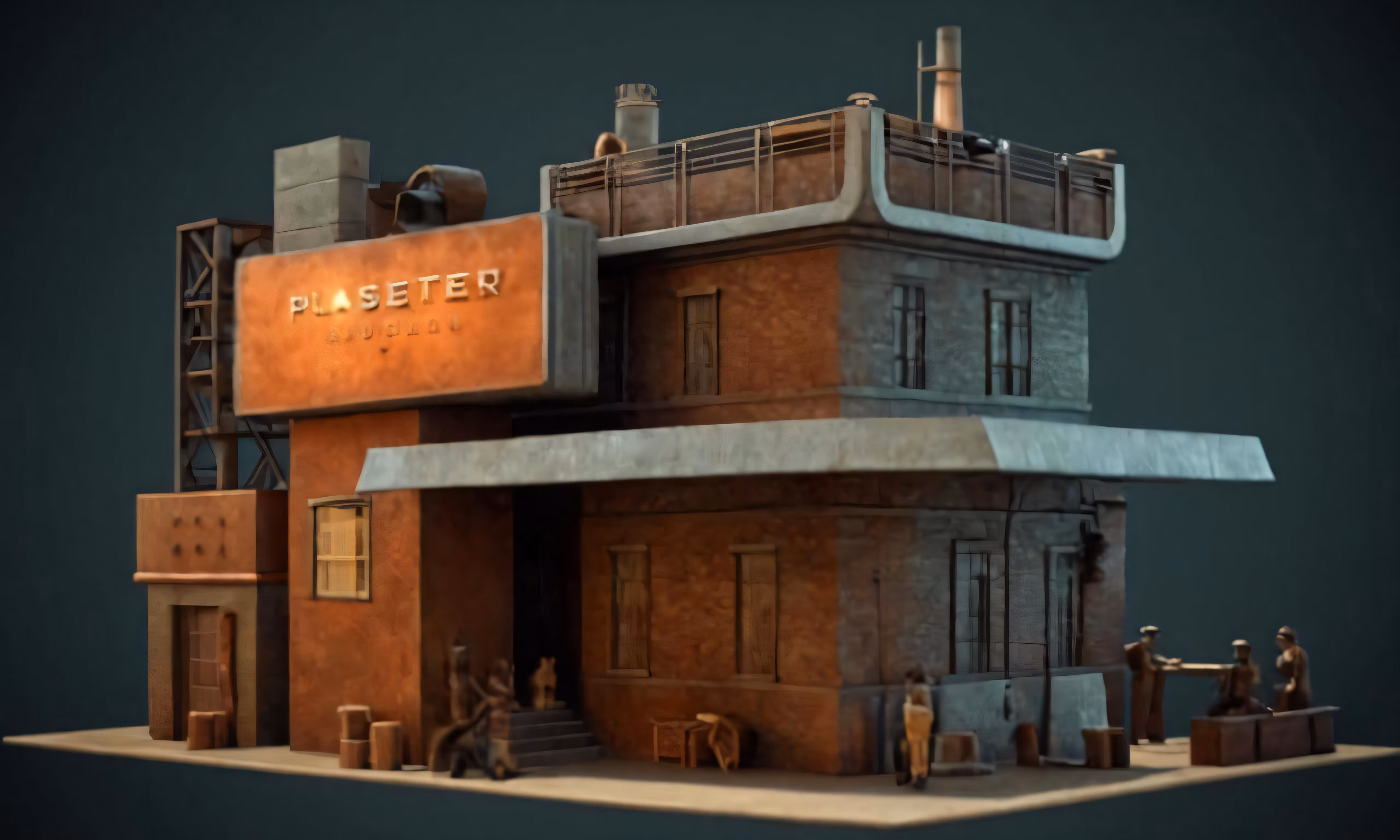 High resolution picture, free to use, a small building with lots of windows next to some people