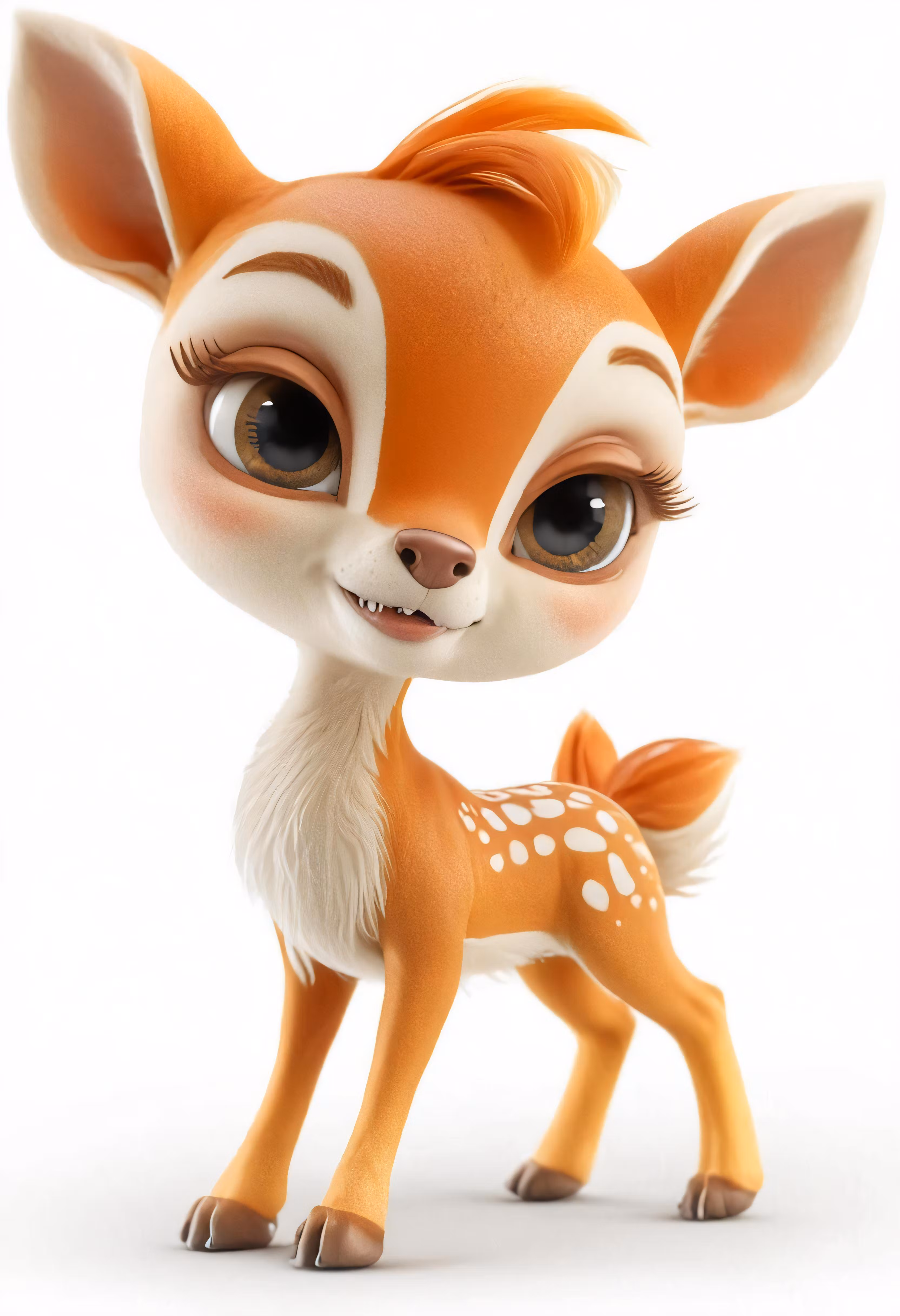 High resolution picture, free to use, a small doll with long hair and big eyes and one little deer