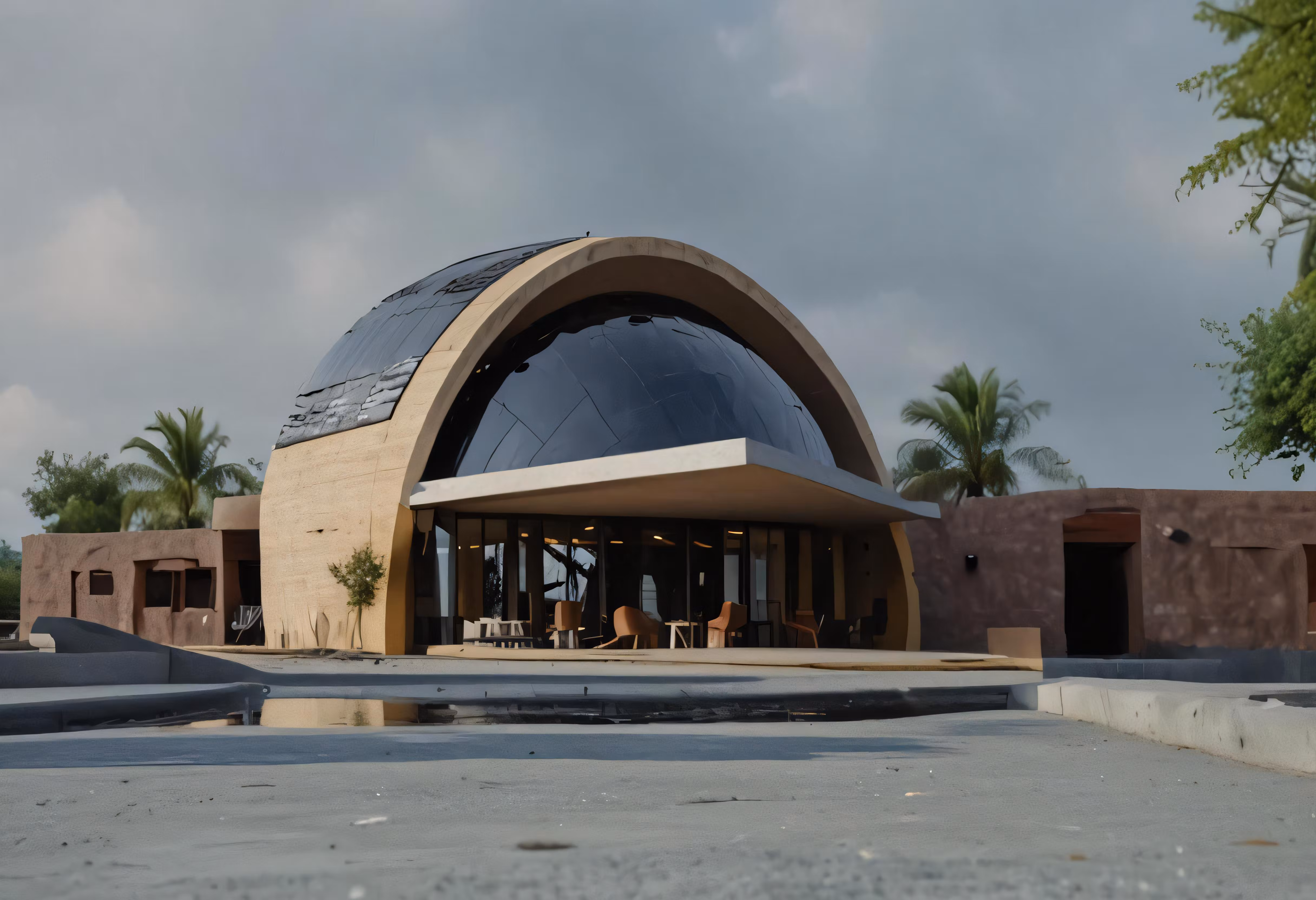 High resolution picture, free to use, a small dome shaped building in a cement area