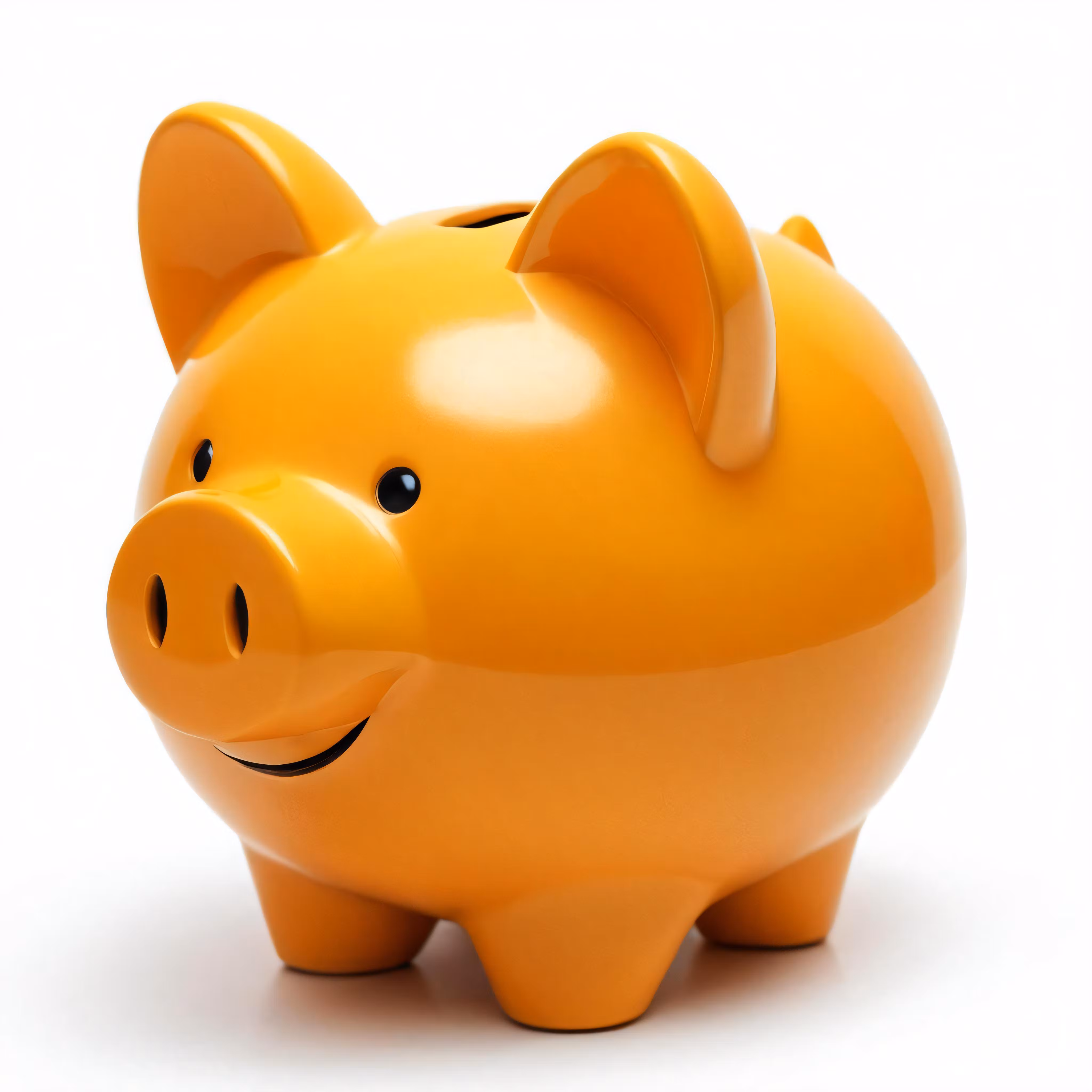 High resolution picture, free to use, a small piggy bank sitting on top of a white table