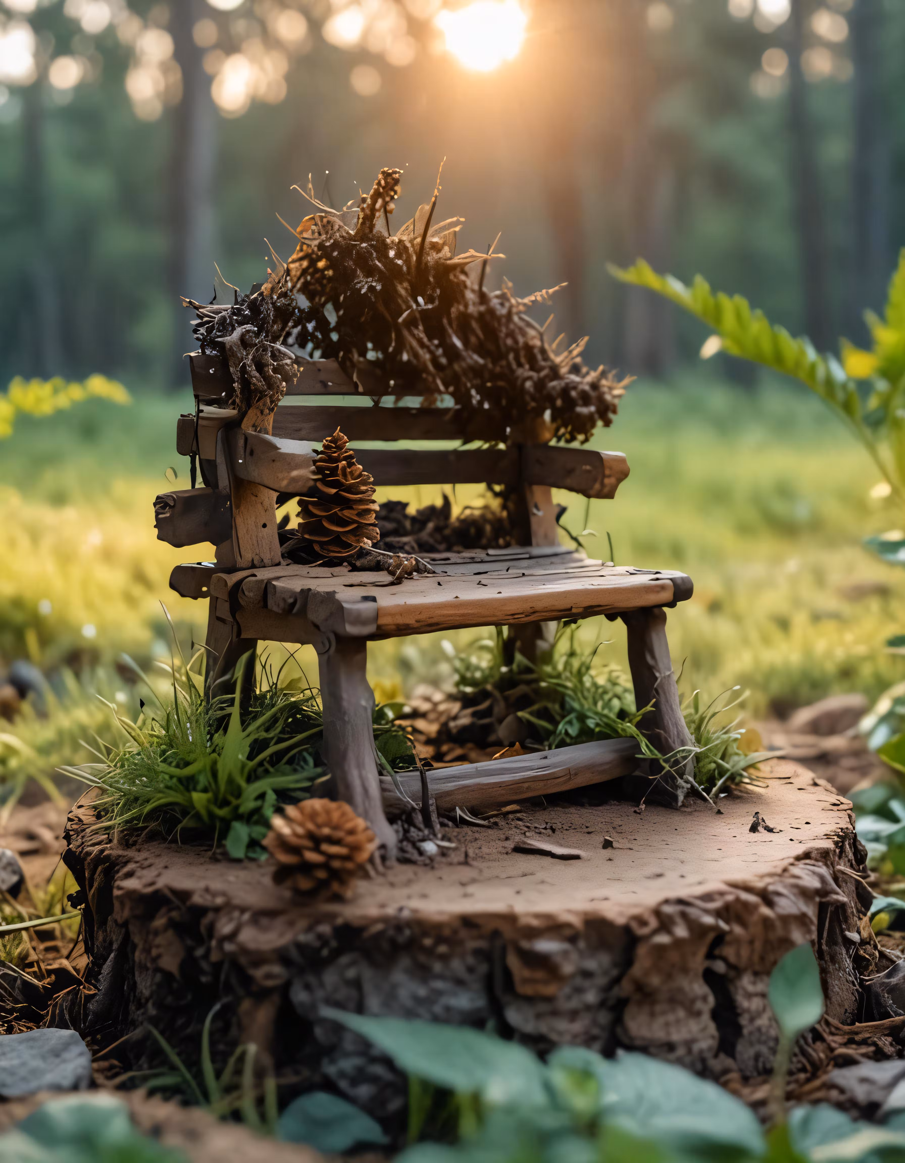High resolution picture, free to use, a small pine cone on top of a wooden bench