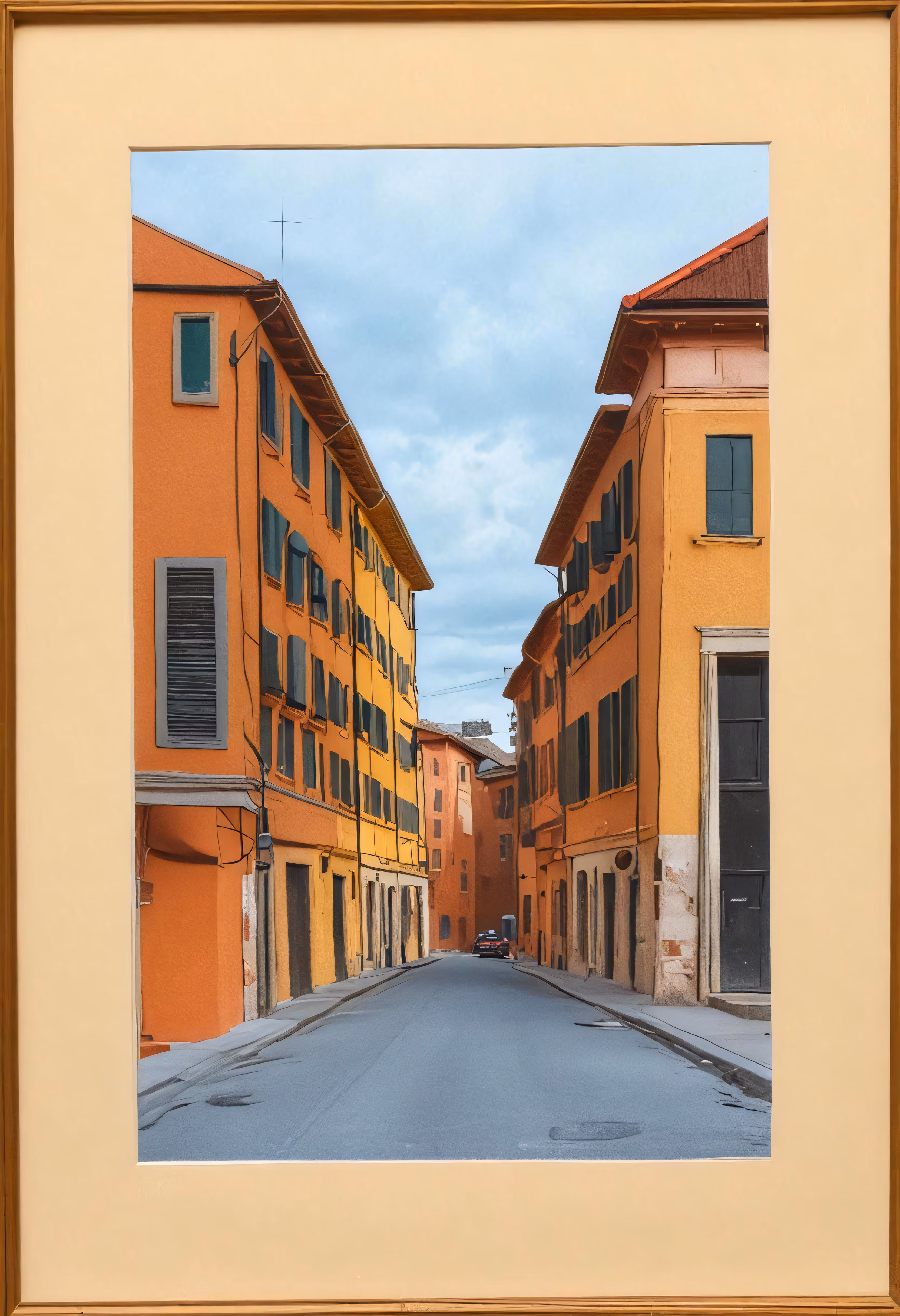 High resolution picture, free to use, a small town that has orange buildings and cars