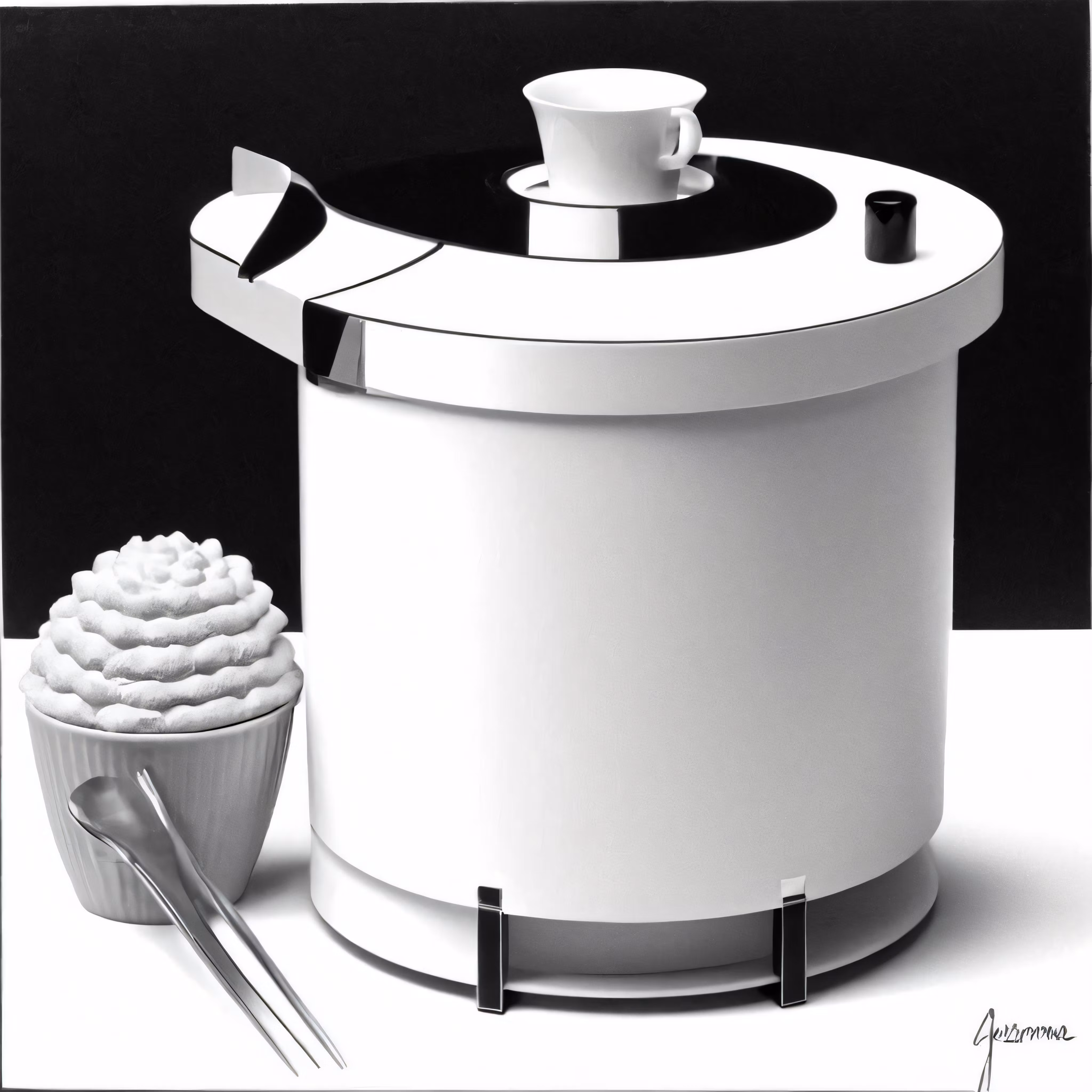 High resolution picture, free to use, a small white cupcake is next to a black and white photo