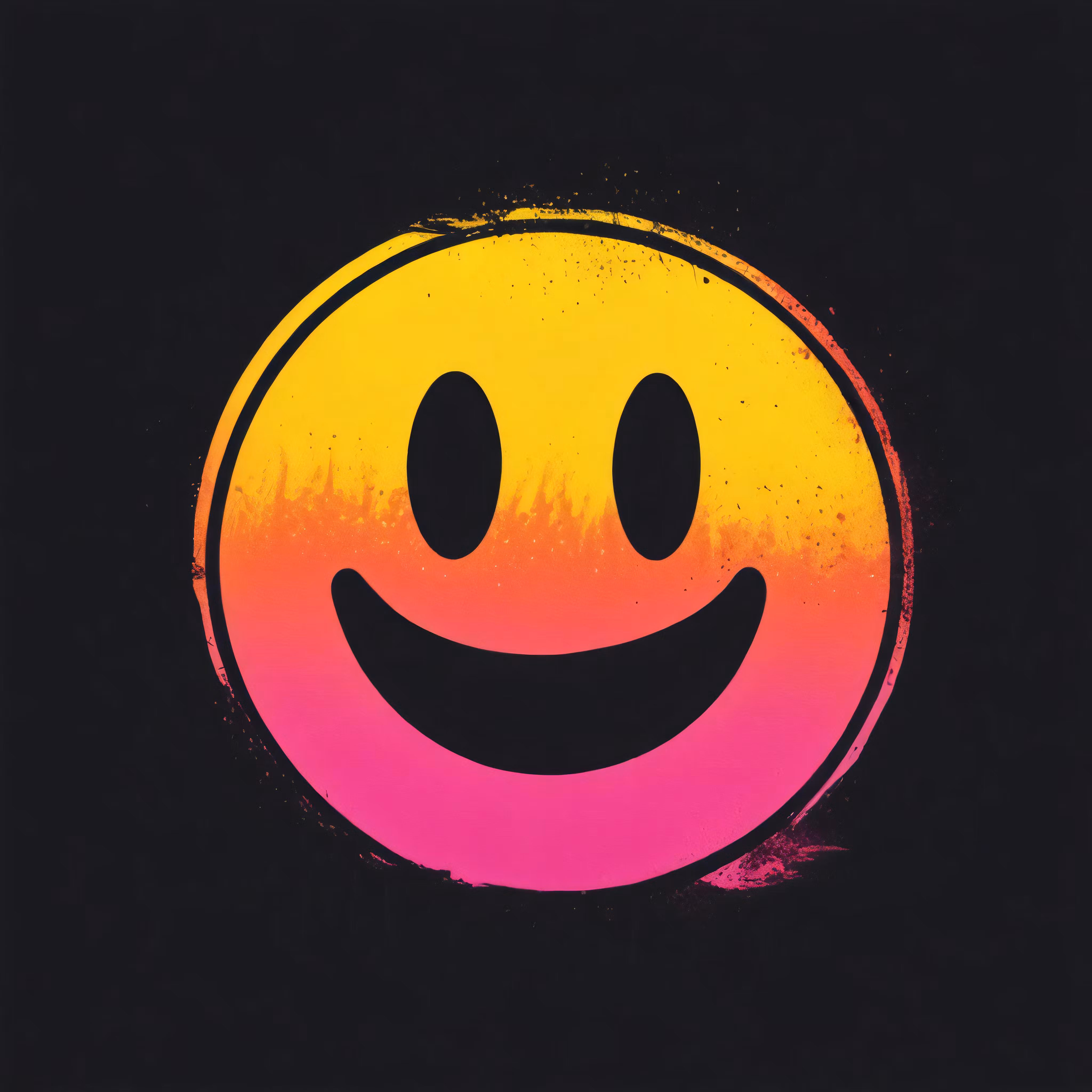 High resolution picture, free to use, a smiling face on the dark background with yellow and pink