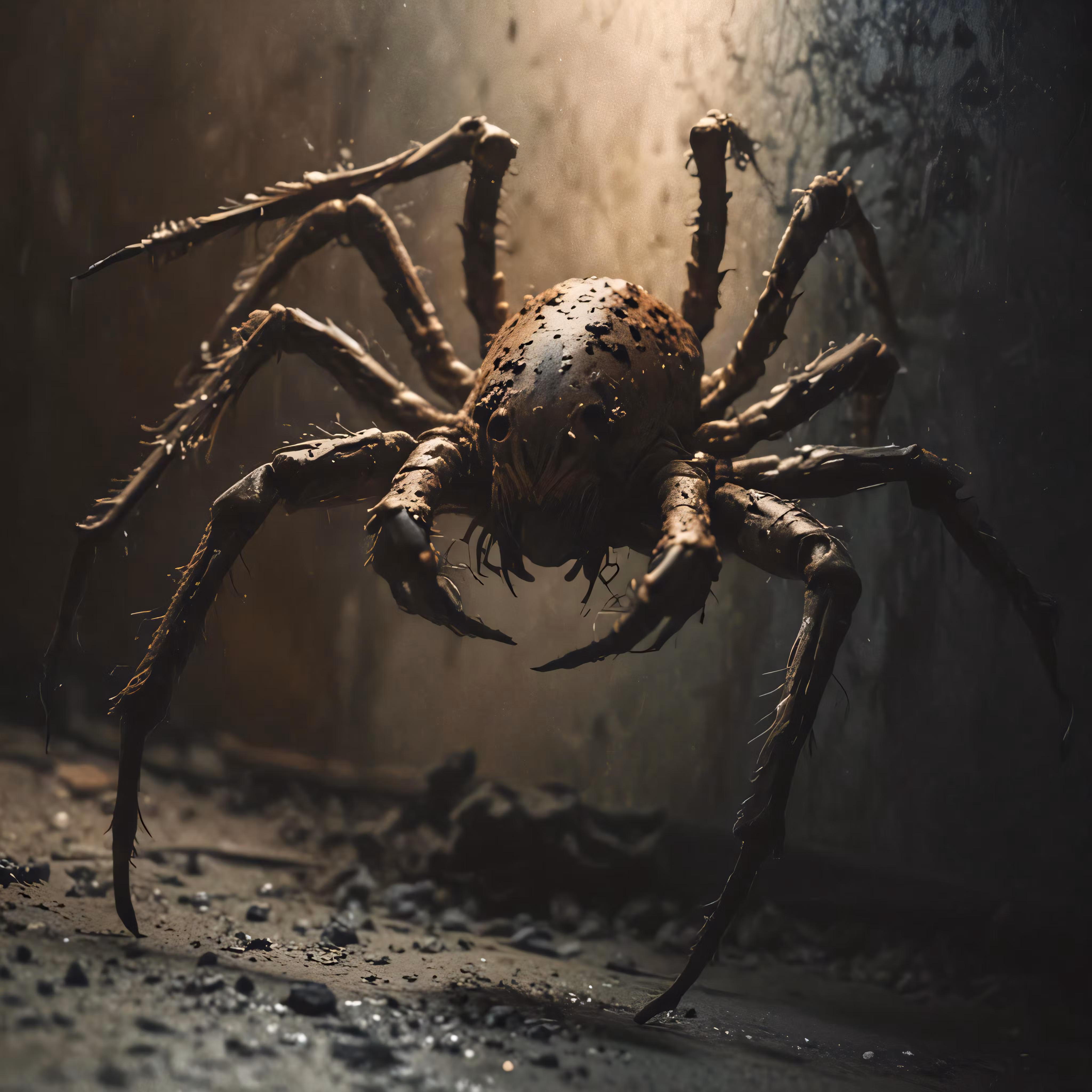 High resolution picture, free to use, a spider that is standing on one leg with a light shining on it