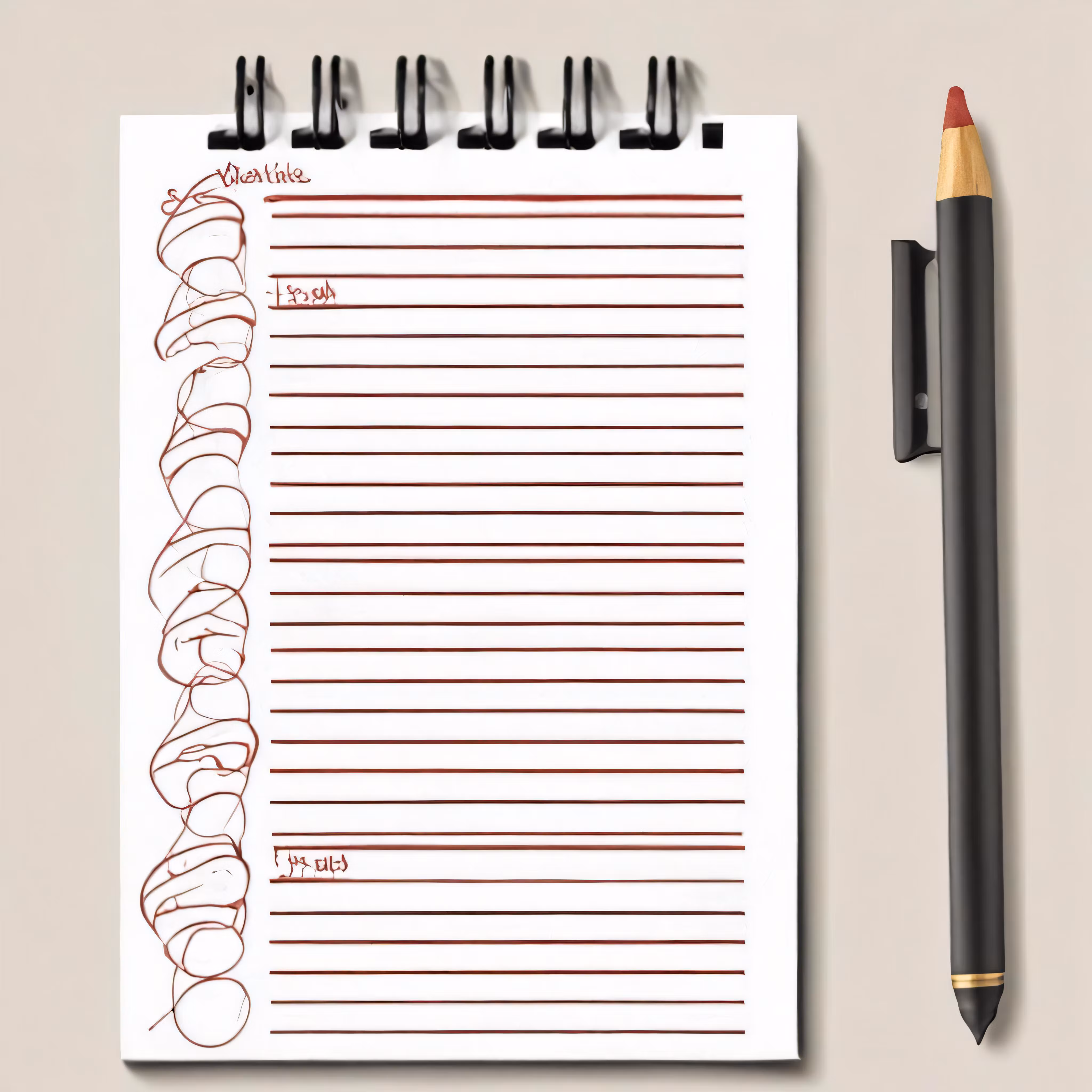 High resolution picture, free to use, a spiral notepad with an illustration of donuts on it next to a pencil